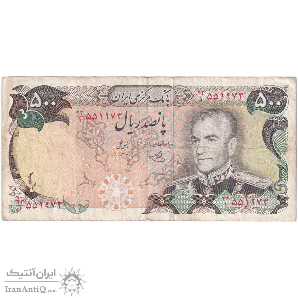 اسکناس 500 ریال (یگانه - خوش کیش) - تک - VF30 - محمد رضا شاه
