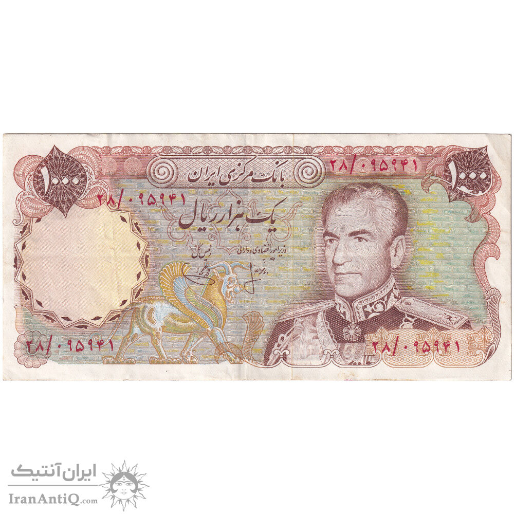 mohammad reza shah 1000 rials (ansari - yegane) iran banknote - EF45