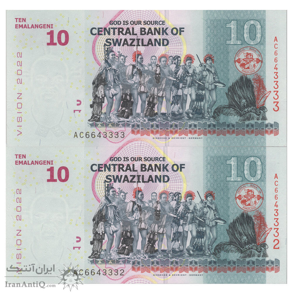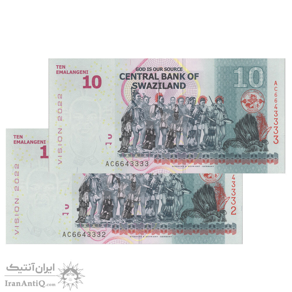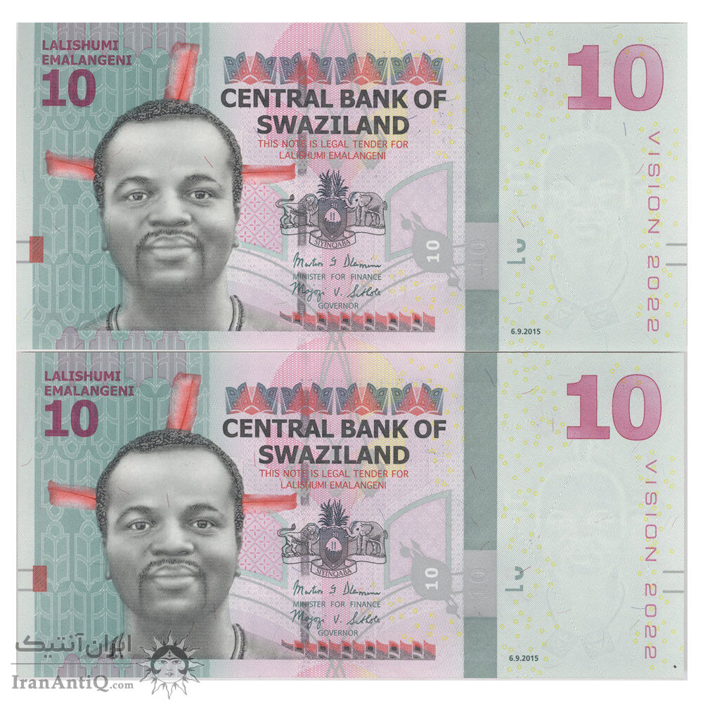اسکناس 10 امالانگنی 2015 مسواتی سوم - چشم انداز 2022 - جفت - UNC65 - سوازیلند