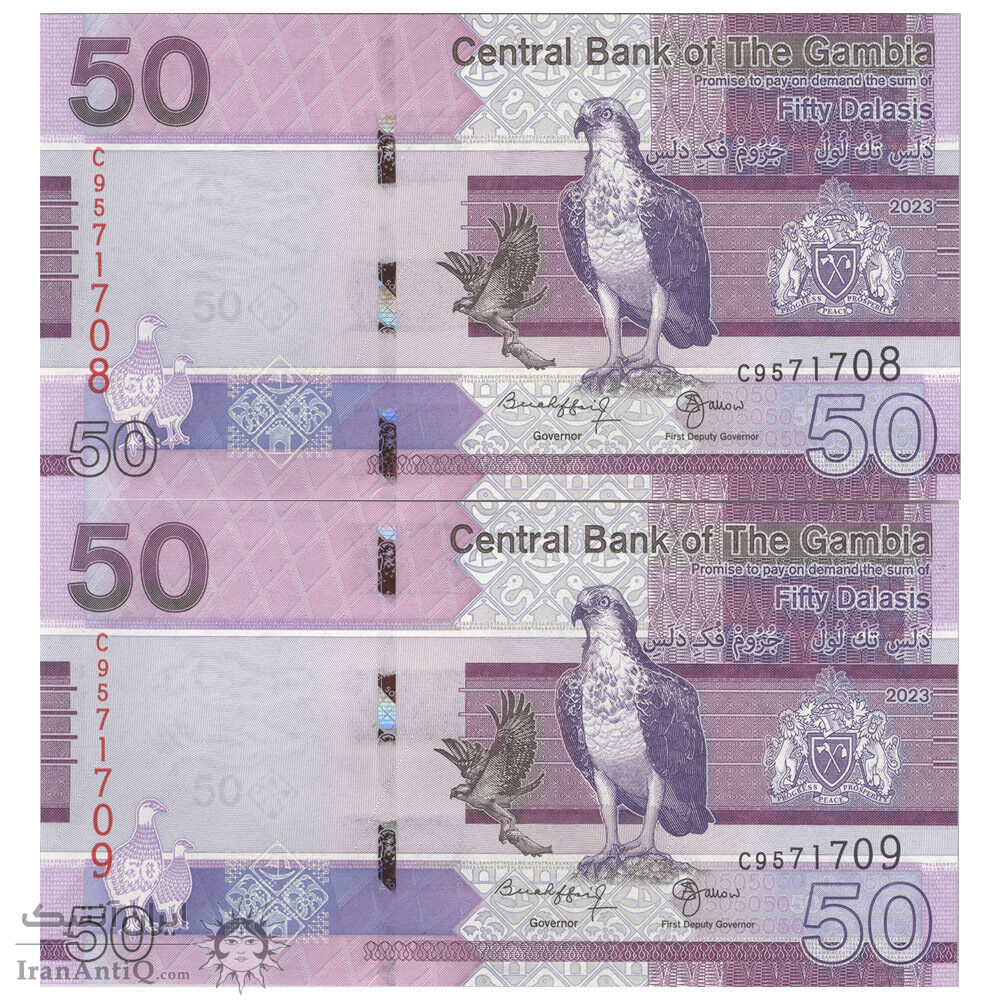 اسکناس 50 دالاسی 2023 جمهوری - جفت - AU58 - گامبیا