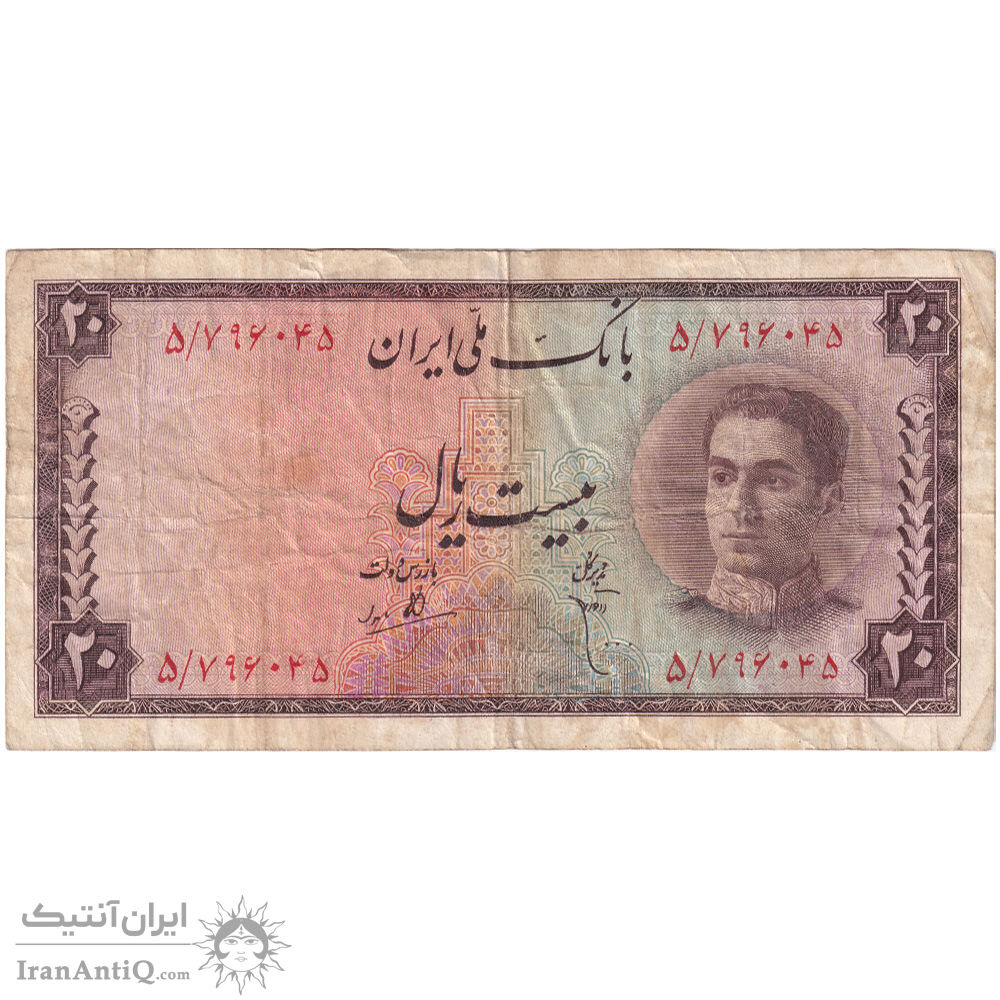 اسکناس 20 ریال سری سوم - تک - VF25 - محمد رضا شاه