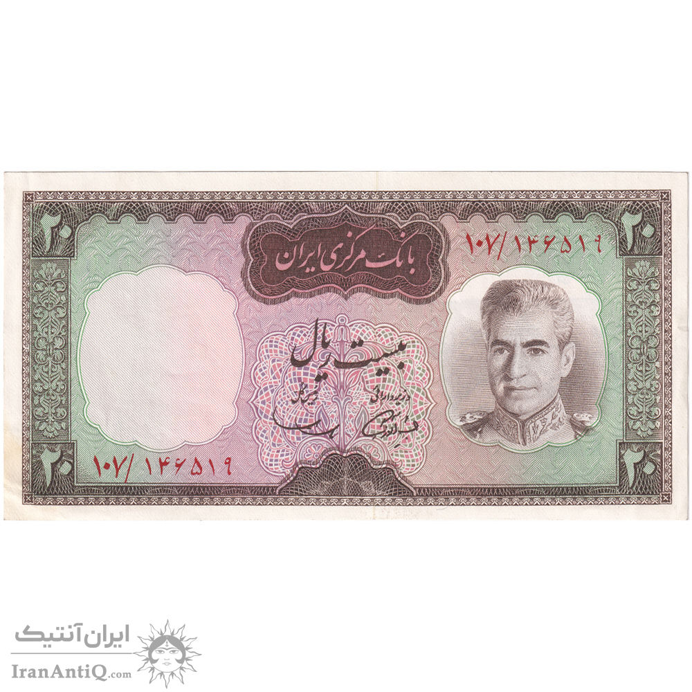 اسکناس 20 ریال (آموزگار - سمیعی) - تک - AU58 - محمد رضا شاه