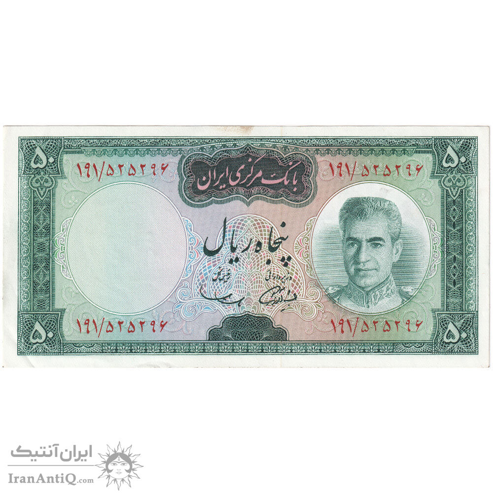 اسکناس 50 ریال (آموزگار - سمیعی) - تک - AU58 - محمد رضا شاه