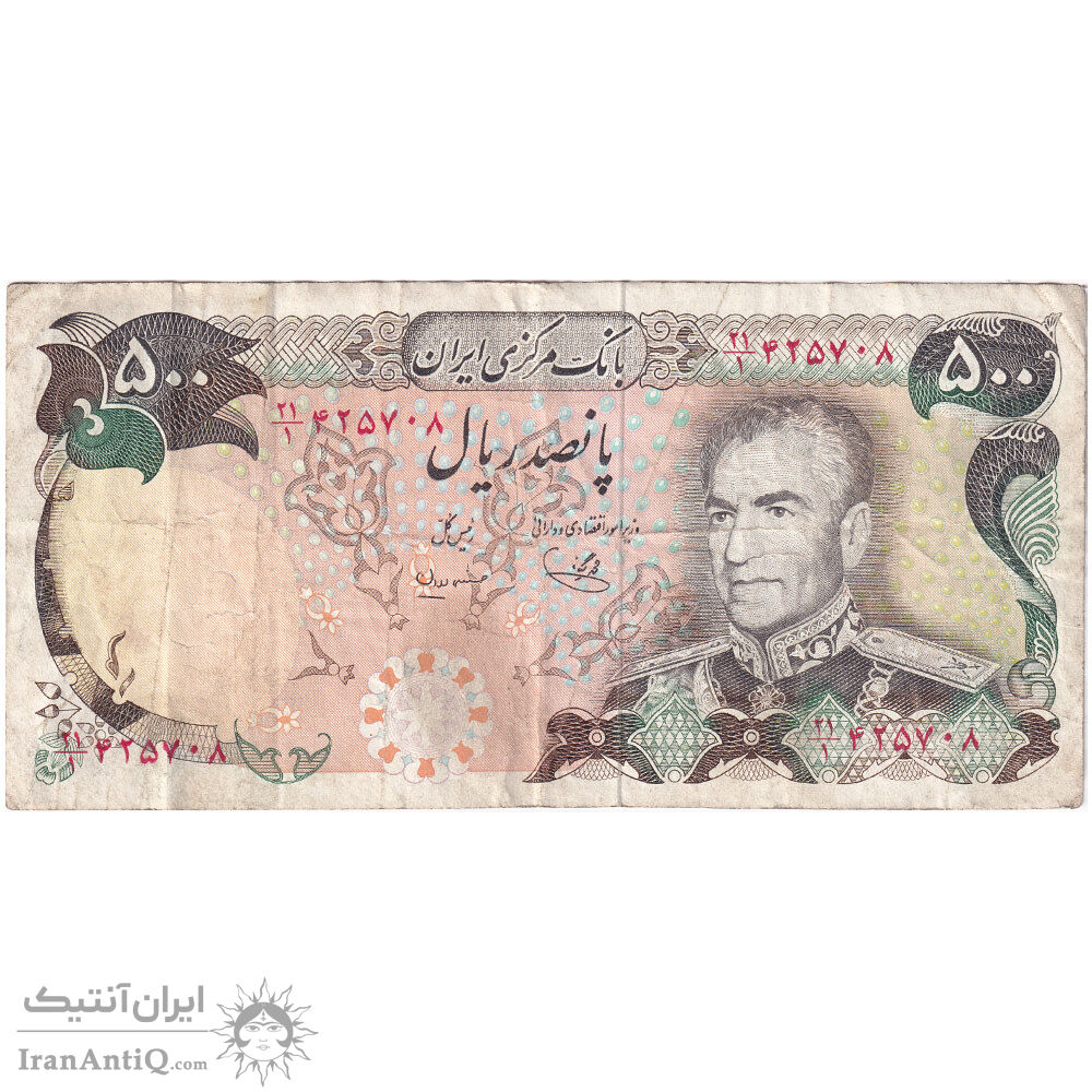 mohammad reza shah 500 rials (yegane - mehran) iran banknote - VF35