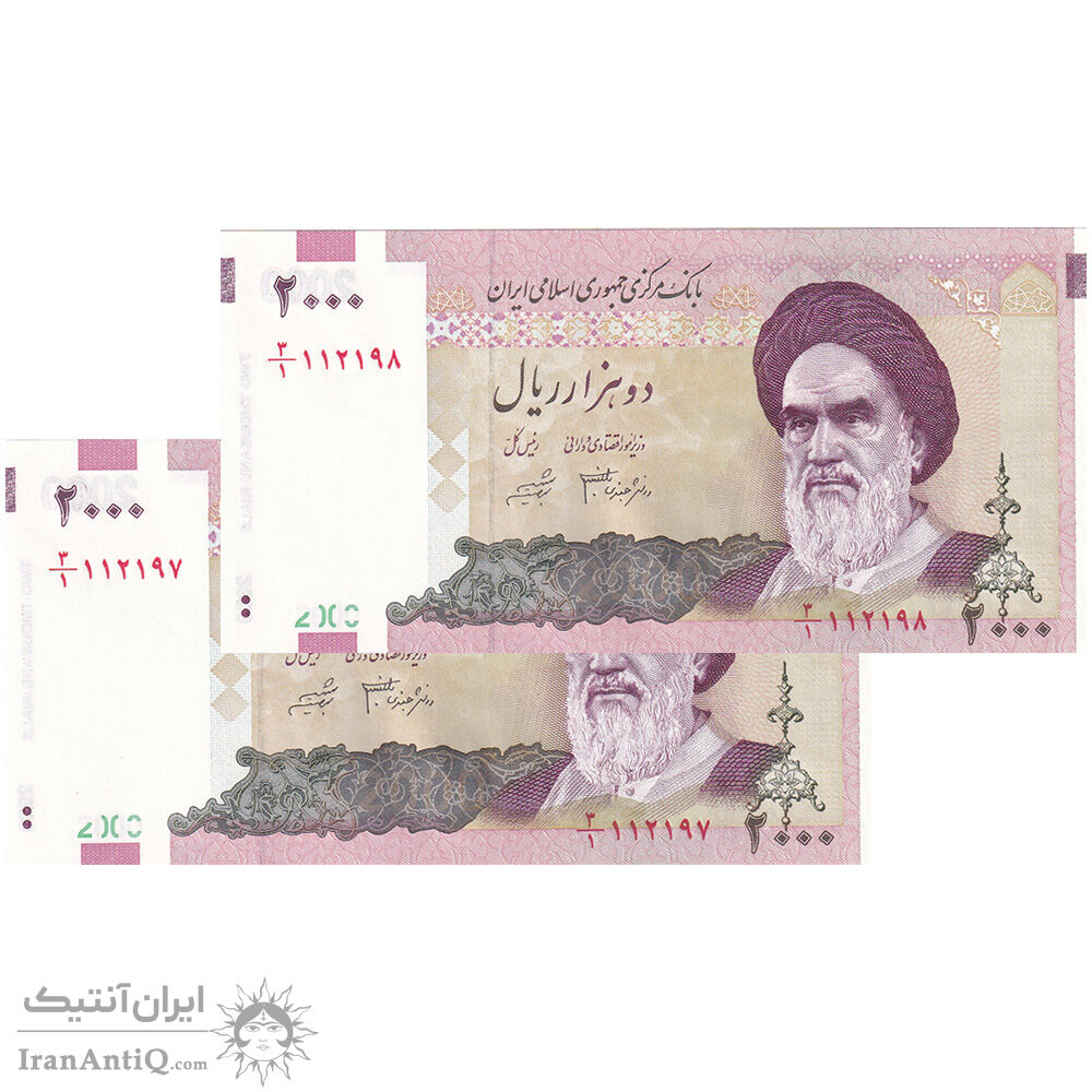 اسکناس 2000 ریال (جعفری - شیبانی) - جفت - UNC65 - جمهوری اسلامی