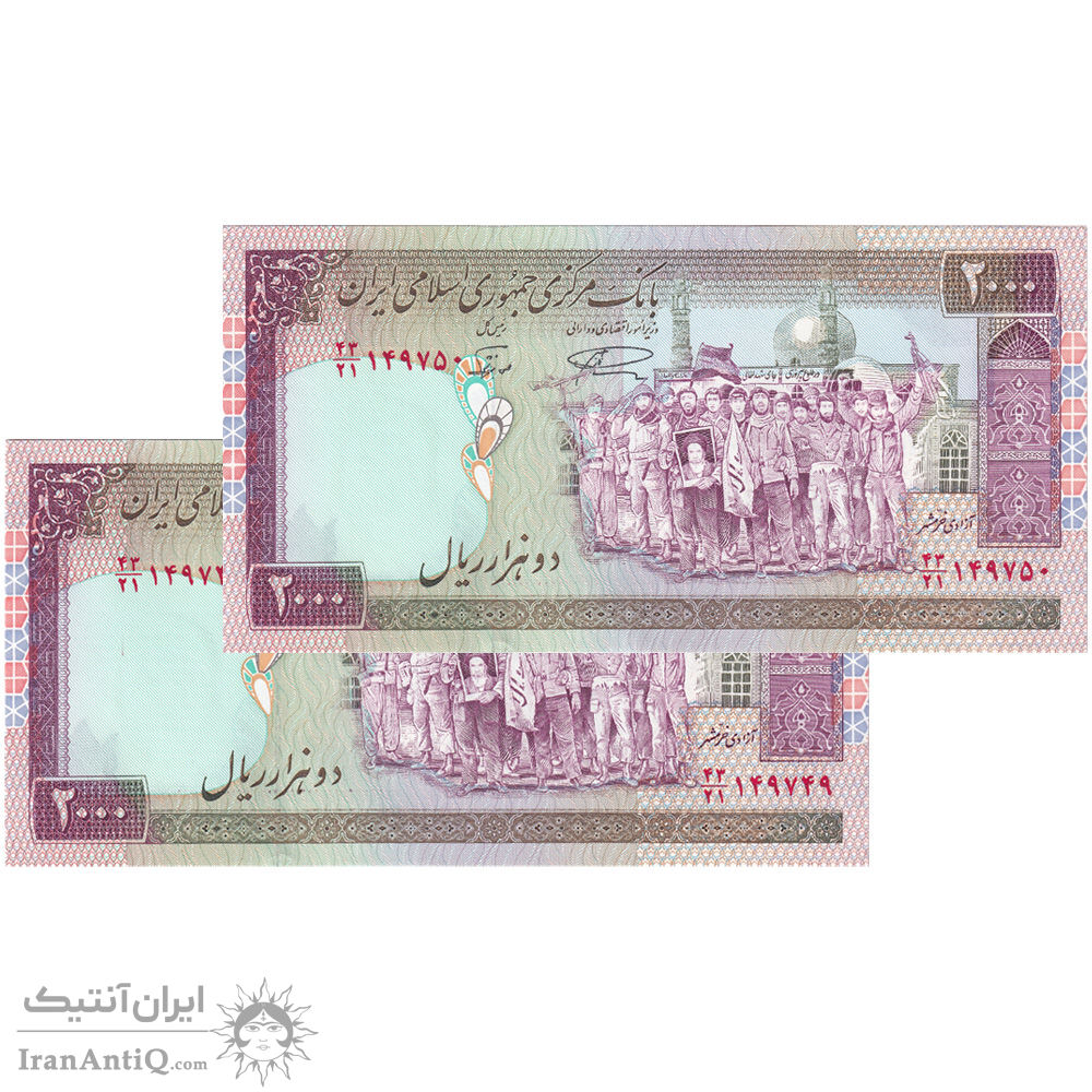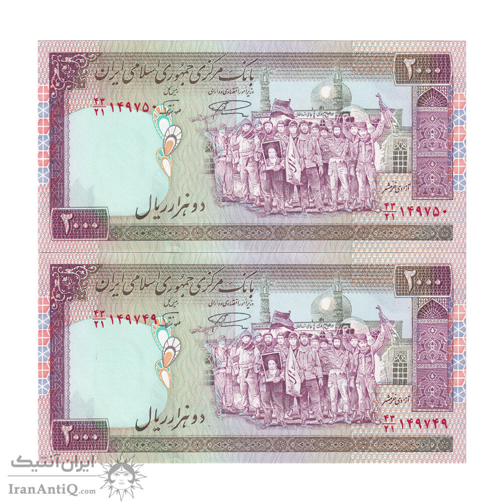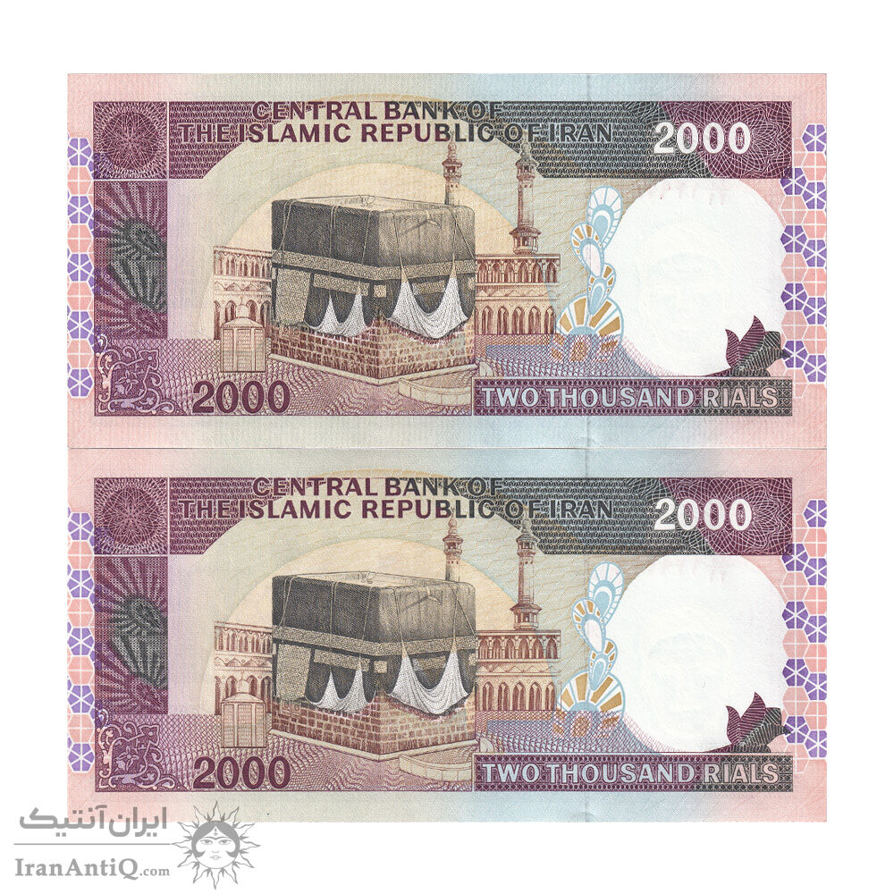 اسکناس 2000 ریال (نمازی - نوربخش) فیلیگران فهمیده - نخ نستعلیق - جفت - UNC63 - جمهوری اسلامی
