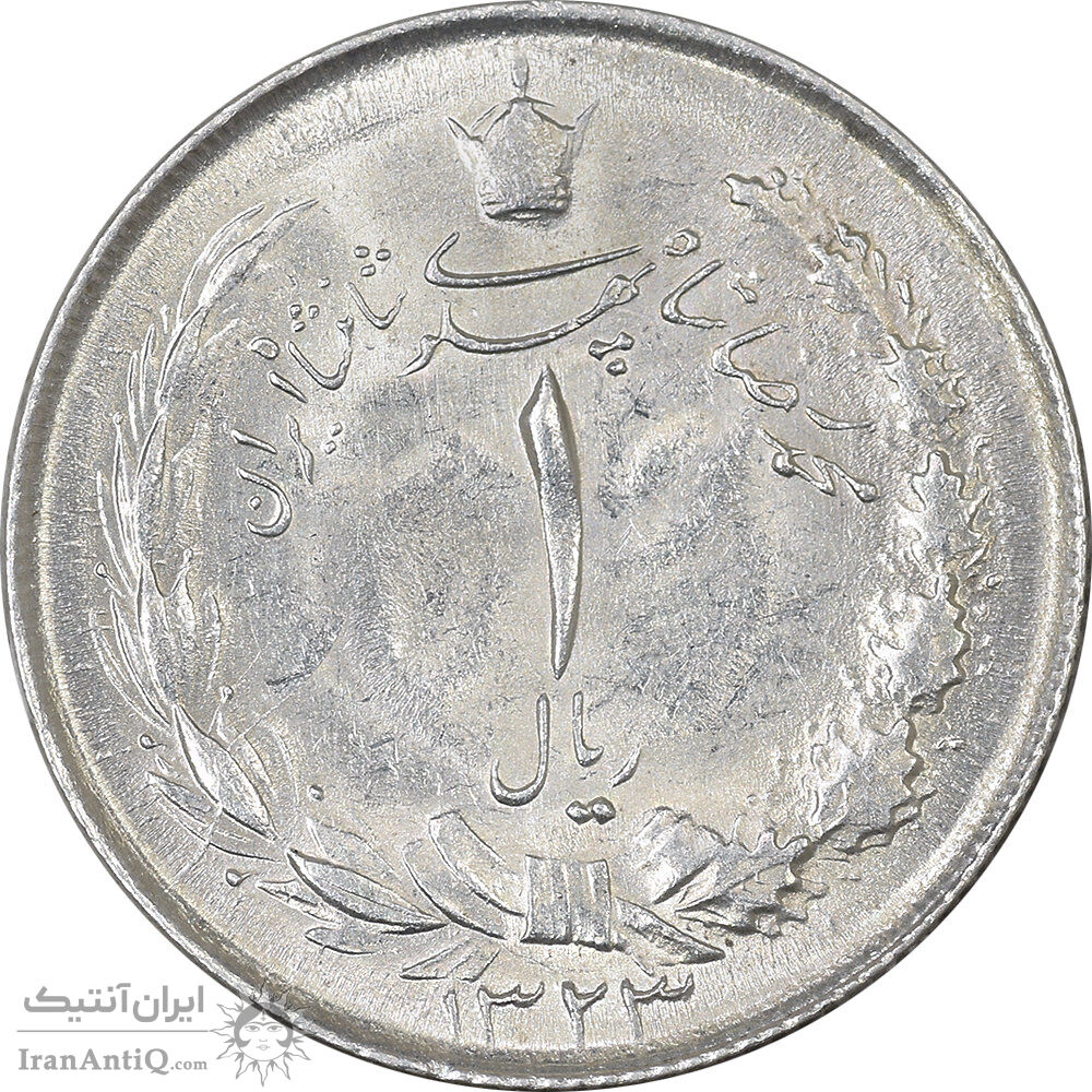 سکه 1 ریال 1323 نقره - AU58 - محمد رضا شاه