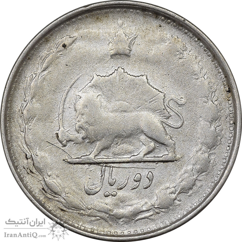 سکه 2 ریال 1323/2 سورشارژ تاریخ - نوع یک - VF30 - محمد رضا شاه