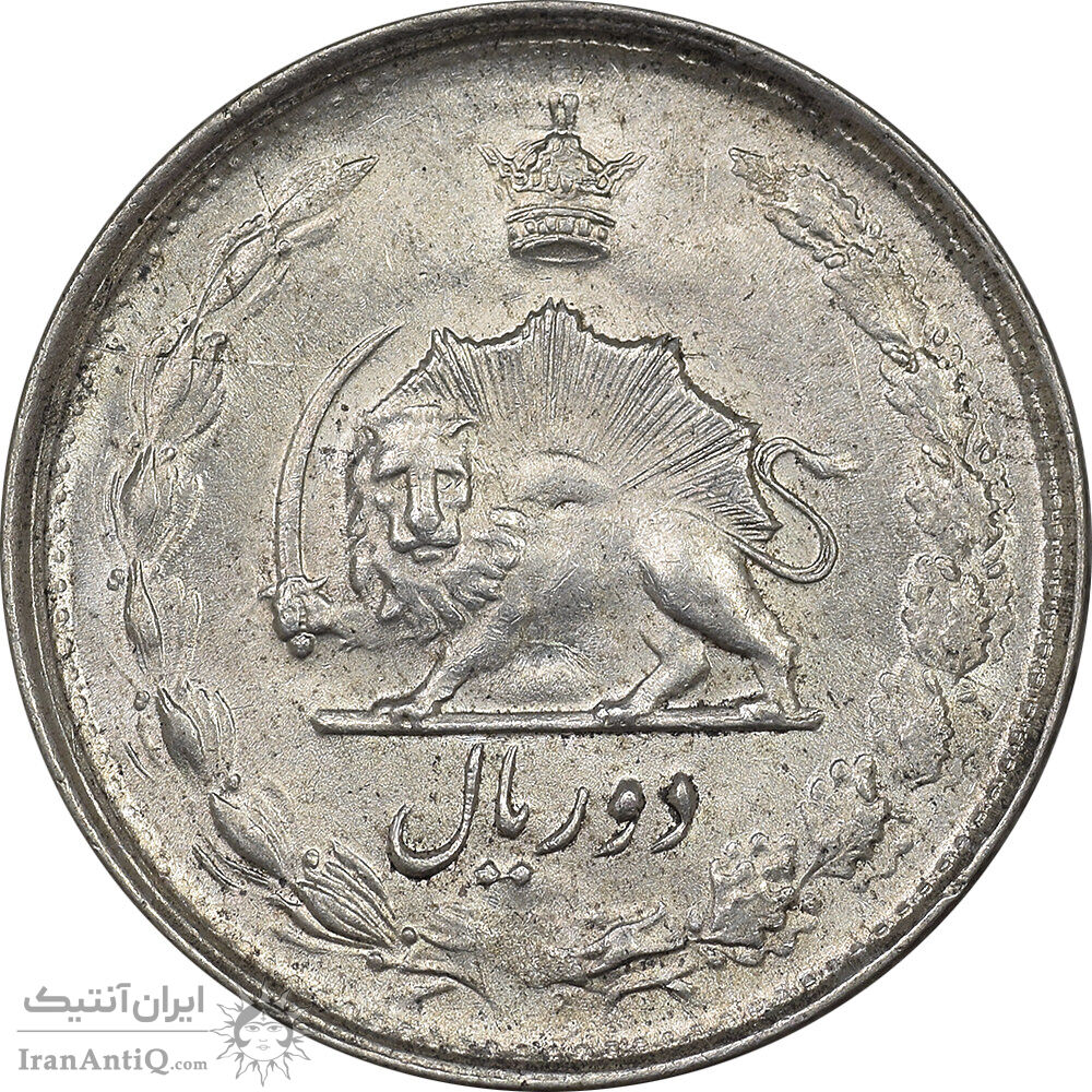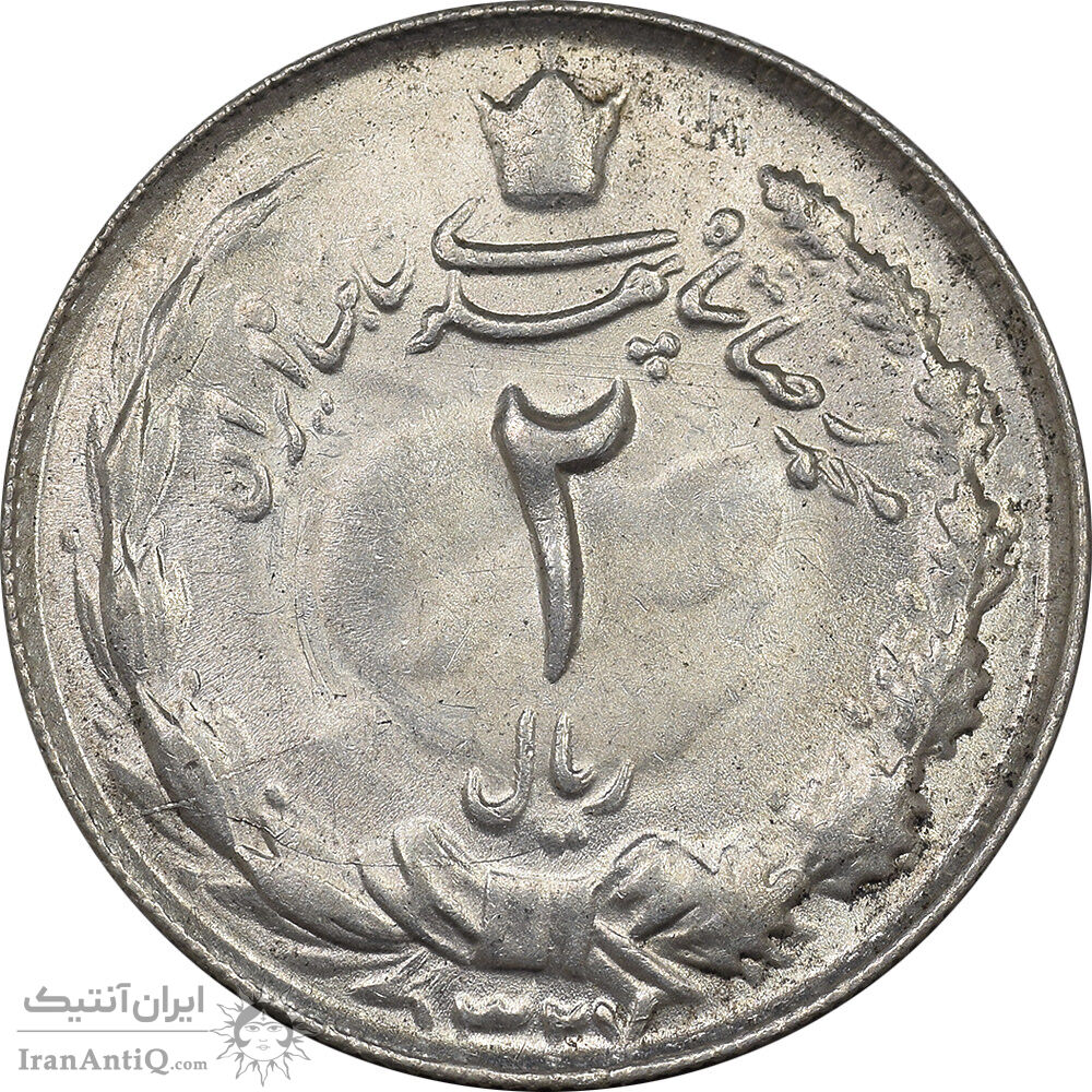 سکه 2 ریال 1327 - ارور مکرر پشت سکه - MS62 - محمد رضا شاه