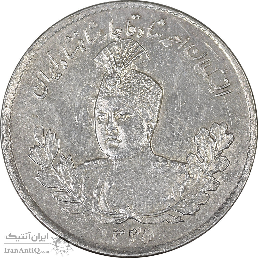 سکه 500 دینار 1335 تصویری - AU53 - احمد شاه