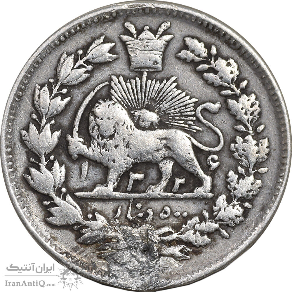 سکه 500 دینار 1326 خطی - VF - محمد علی شاه
