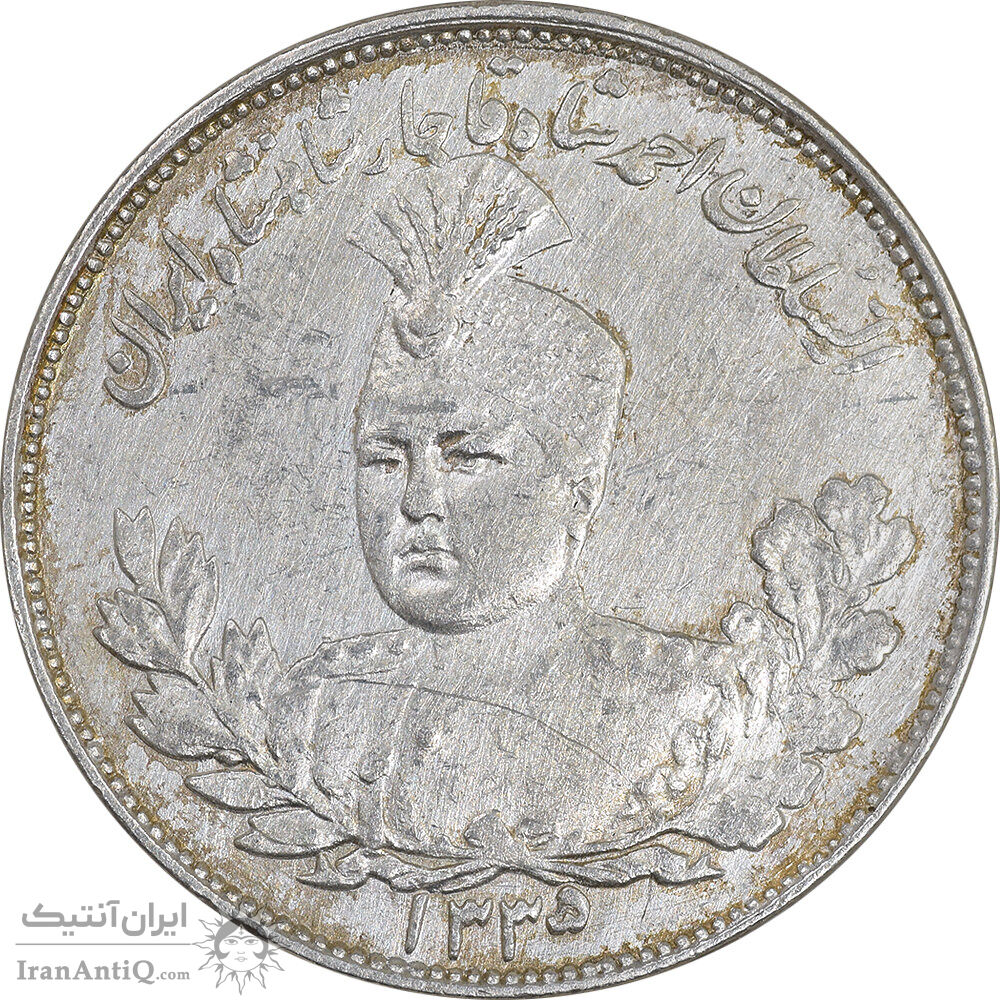سکه 2000 دینار 1335 تصویری - واریته 5 تاریخ بالا - AU50 - احمد شاه
