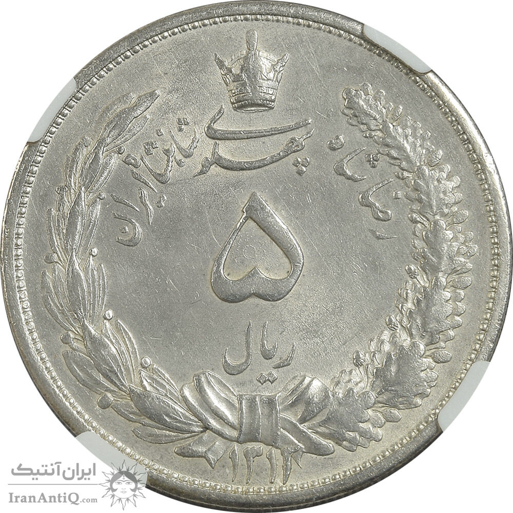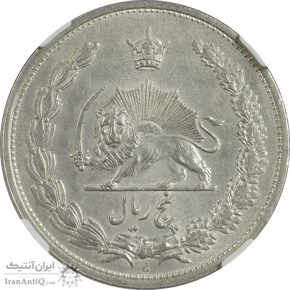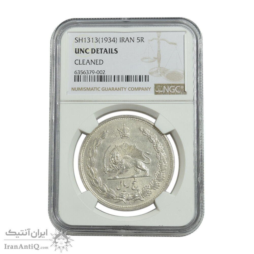 سکه 5 ریال 1313 - cleaned - UNC - رضا شاه