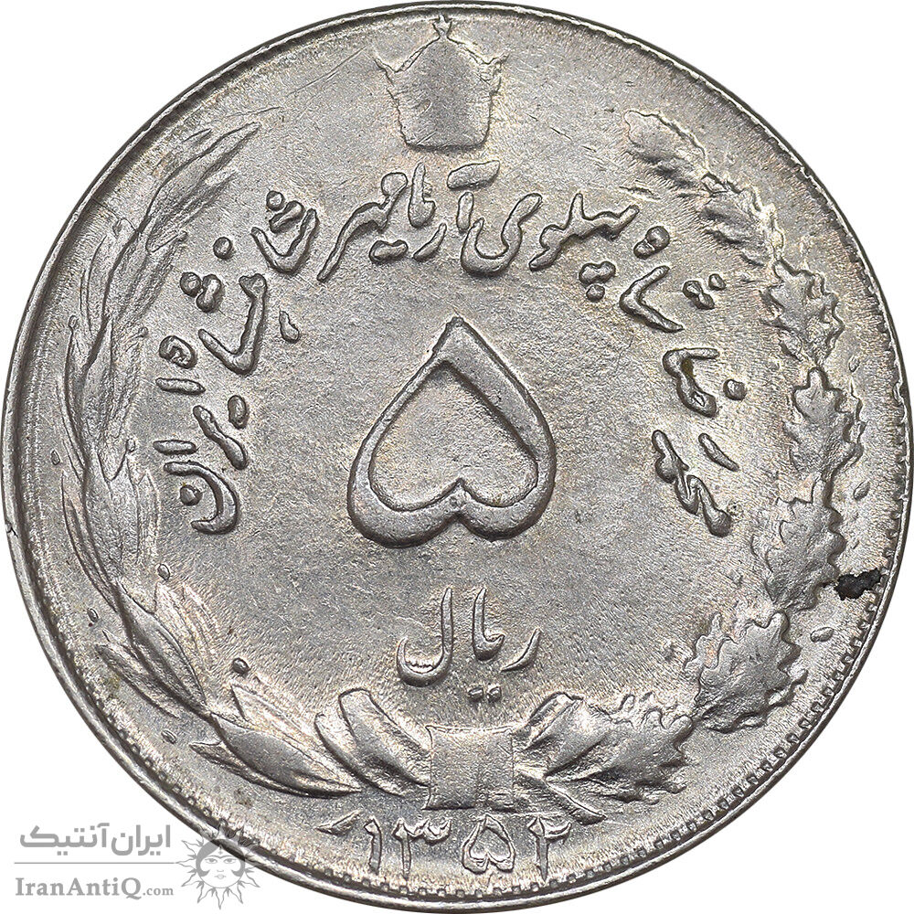 سکه 5 ریال 1352 آریامهر - AU58 - محمد رضا شاه