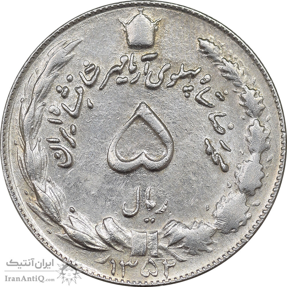 سکه 5 ریال 1352 آریامهر - AU50 - محمد رضا شاه