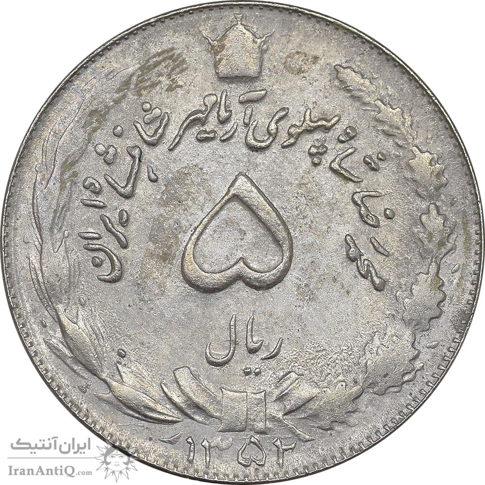 سکه 5 ریال 1352 آریامهر - EF40 - محمد رضا شاه