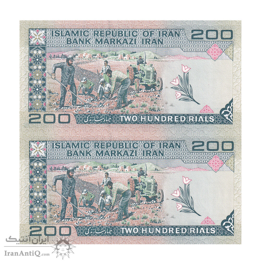 اسکناس 200 ریال (نمازی - نوربخش) فیلیگران الله - شماره بزرگ - UNC64 - جمهوری اسلامی