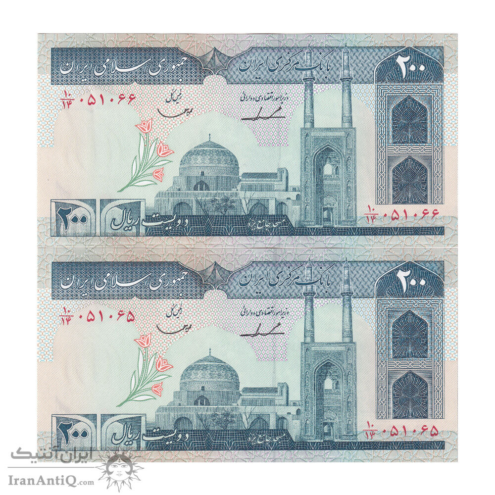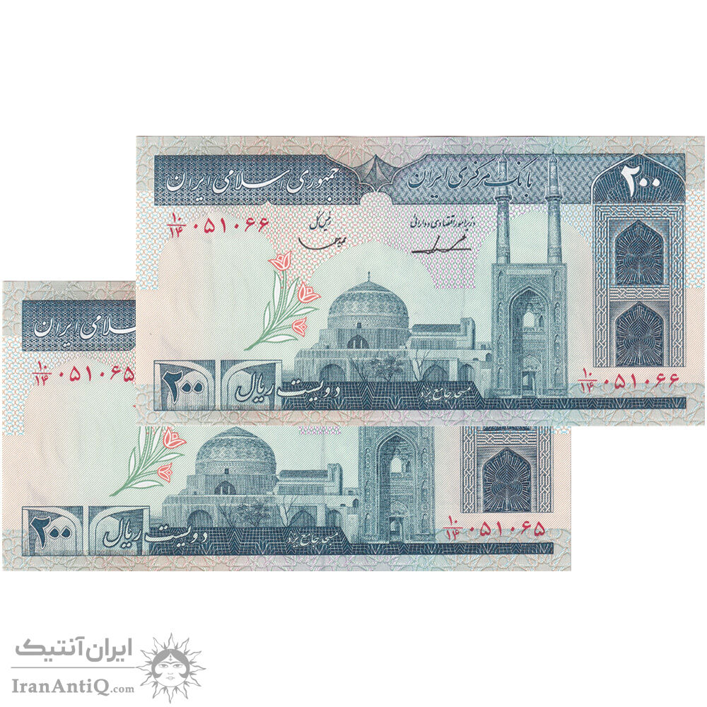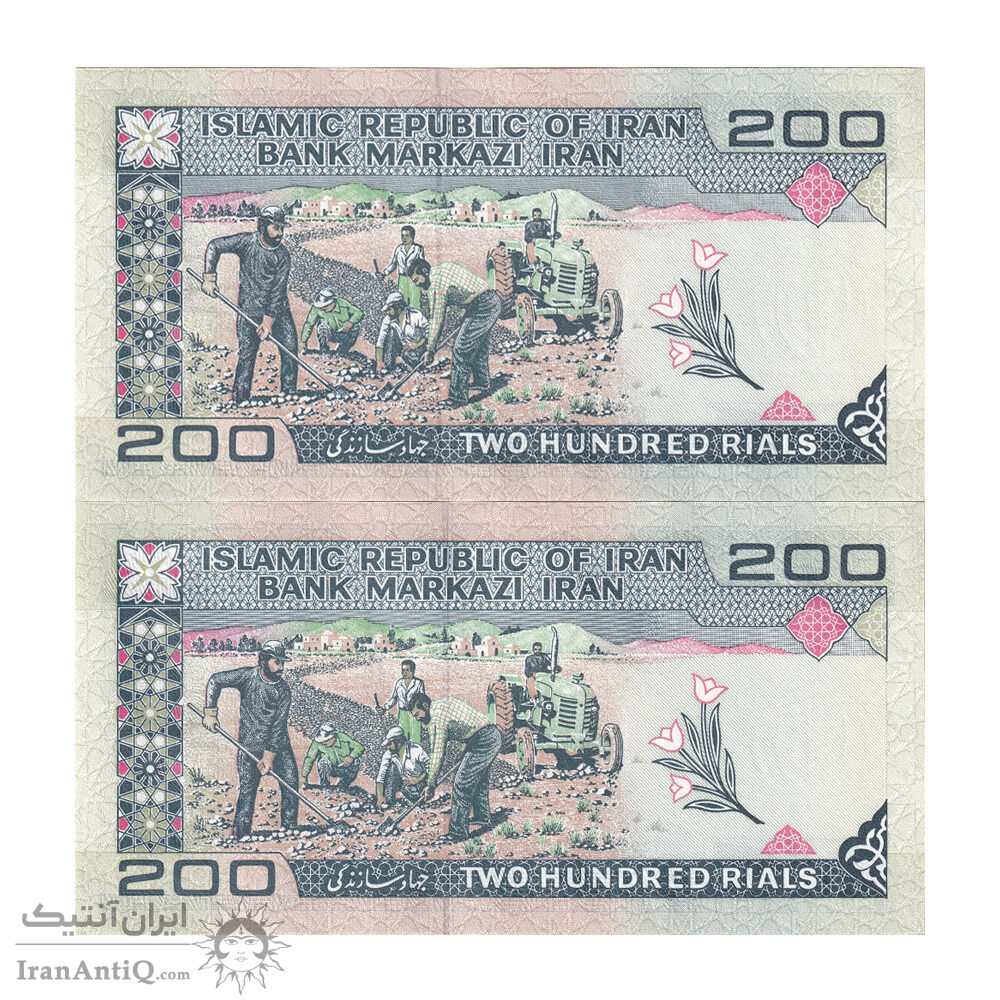 اسکناس 200 ریال (ایروانی - قاسمی) امضاء کوتاه - جفت - UNC62 - جمهوری اسلامی