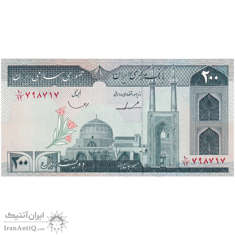 Islamic Republic 200 rials (iravani - ghassemi) iran banknote - UNC63