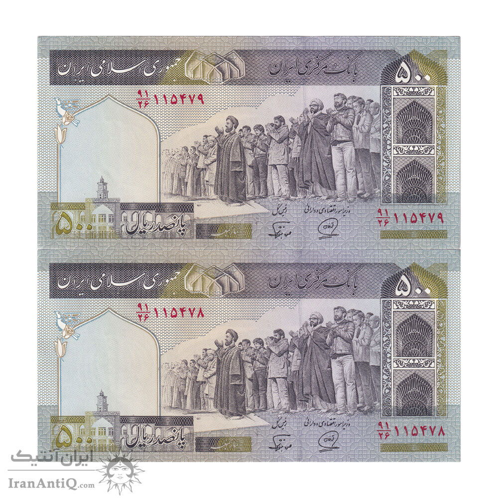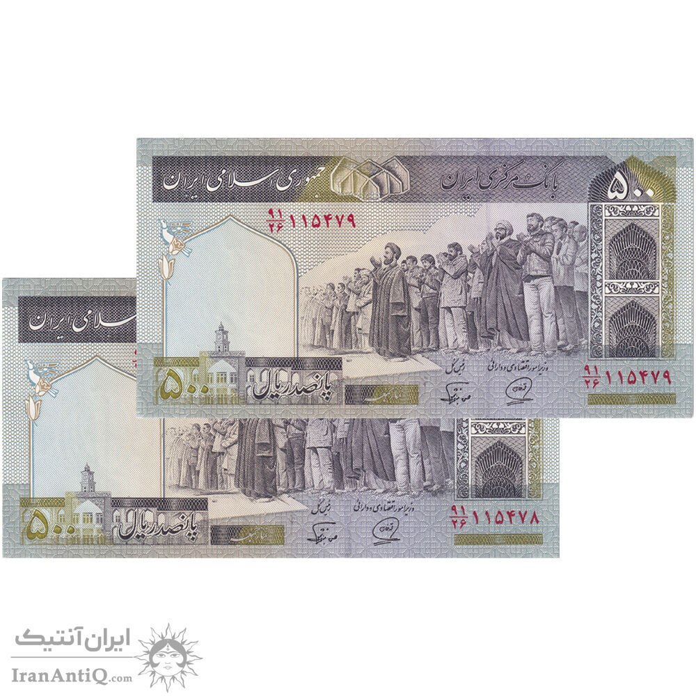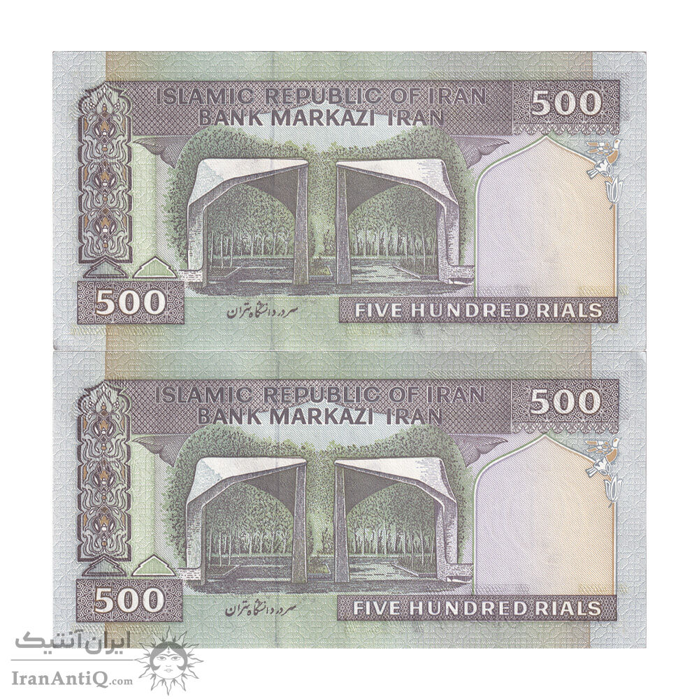 اسکناس 500 ریال (محمدخان - نوربخش) فیلیگران الله - جفت - UNC62 - جمهوری اسلامی