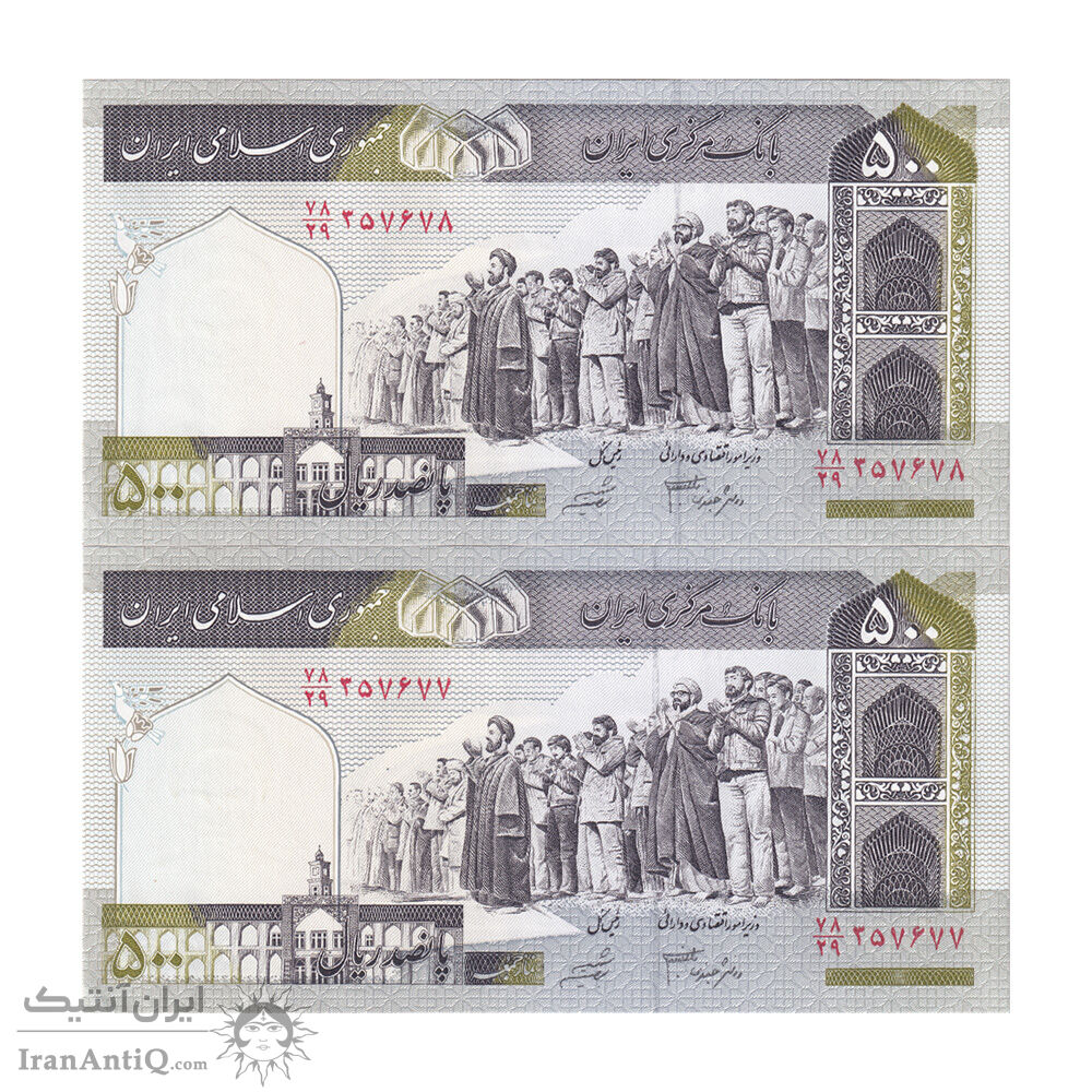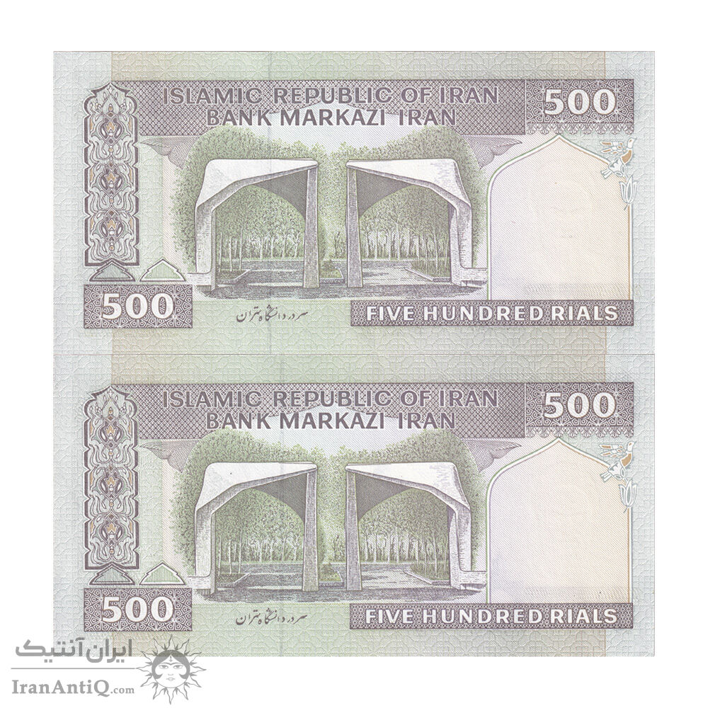 اسکناس 500 ریال (جعفری - شیبانی) شماره کوچک - جفت - UNC61 - جمهوری اسلامی