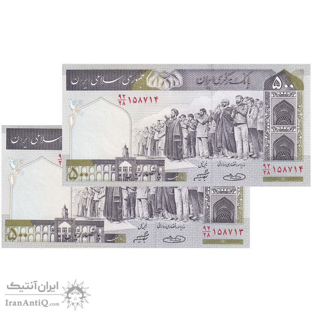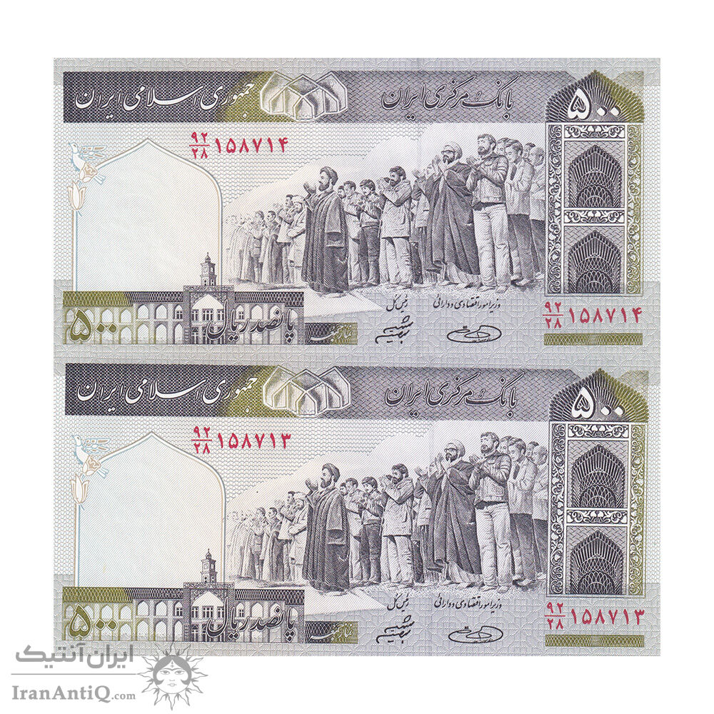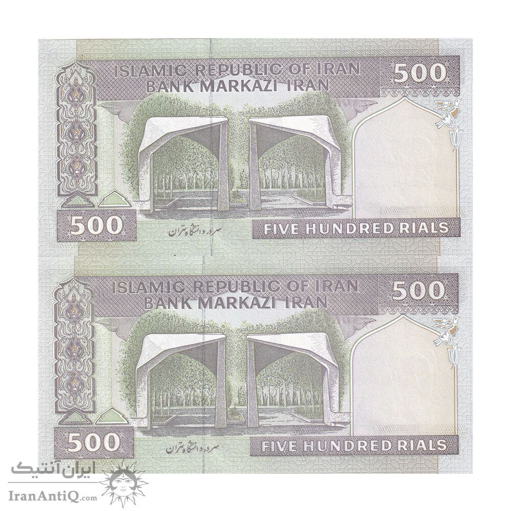 اسکناس 500 ریال (حسینی - شیبانی) شماره بزرگ - جفت - UNC64 - جمهوری اسلامی
