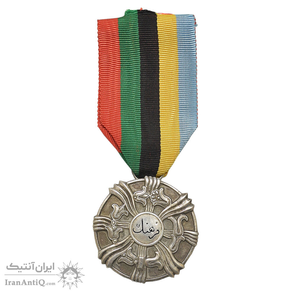 مدال نقره فرهنگ درجه یک - با روبان - EF - محمدرضا شاه