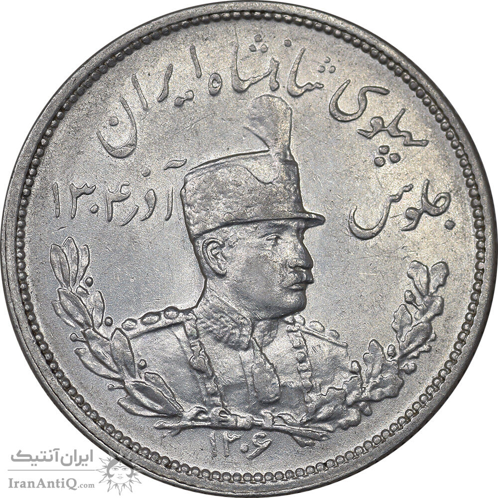 سکه 2000 دینار 1306 تصویری - ضرب هیتون - AU55 - رضا شاه