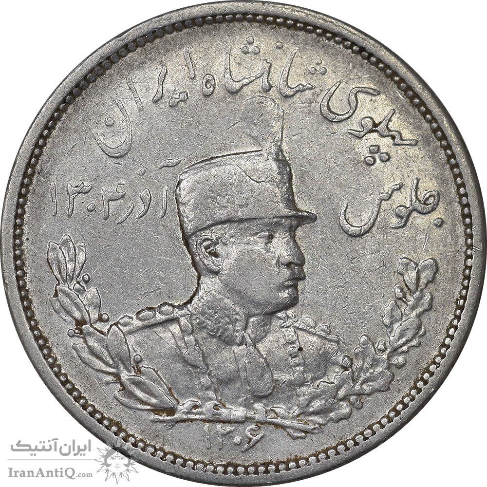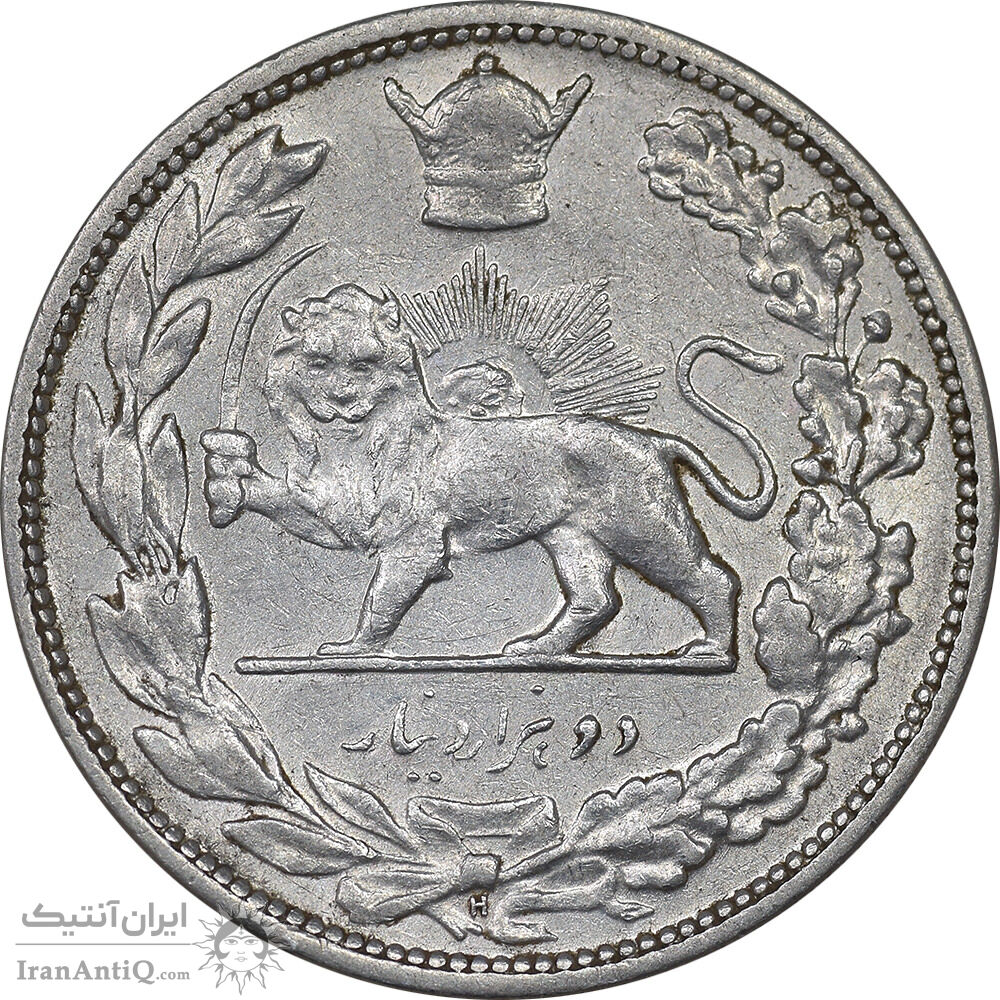 سکه 2000 دینار 1306 تصویری - ضرب هیتون - AU50 - رضا شاه