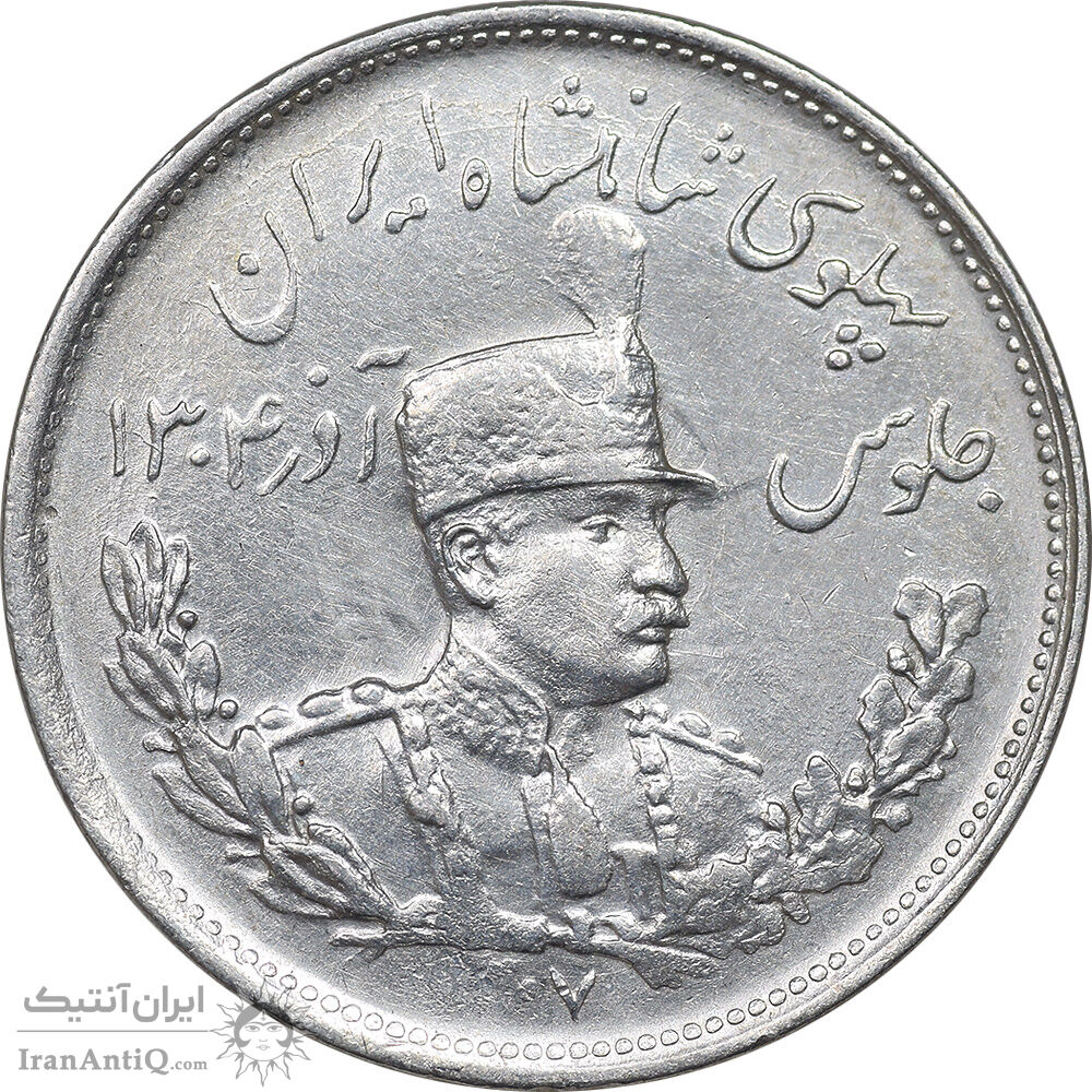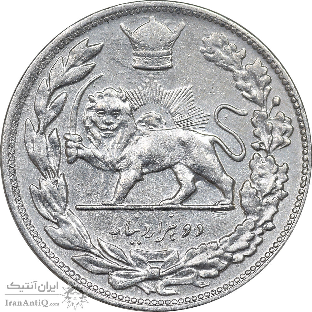 سکه 2000 دینار 1307 تصویری - cleaned - EF - رضا شاه
