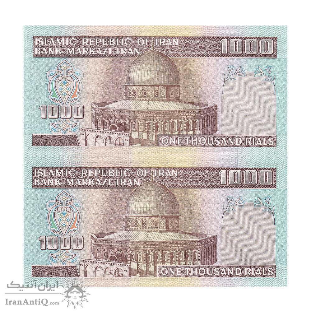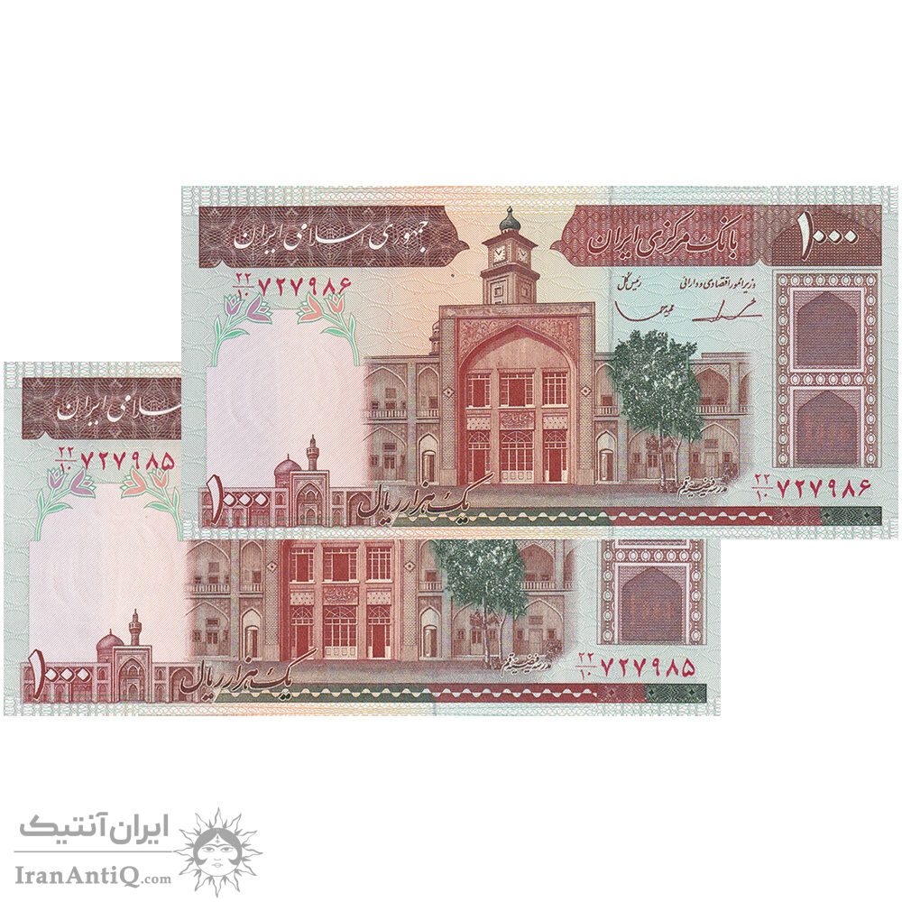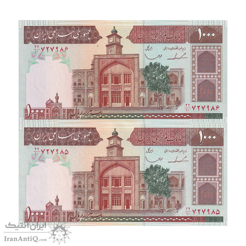 اسکناس 1000 ریال (ایروانی - قاسمی) فیلیگران الله - شماره بزرگ - جفت - UNC63 - جمهوری اسلامی