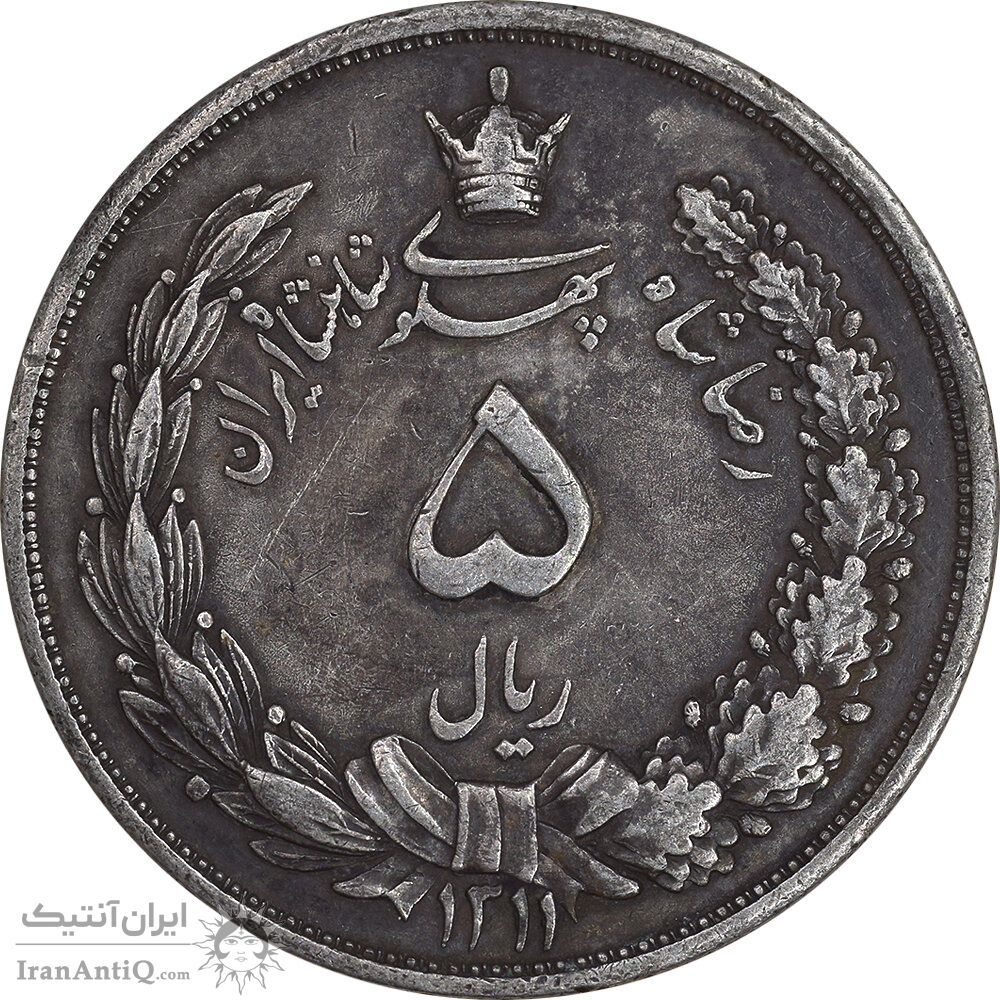 سکه 5 ریال 1311 - EF45 - رضا شاه