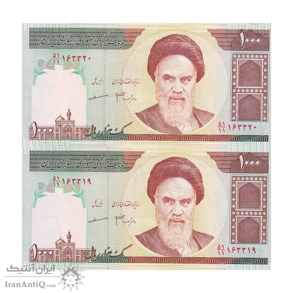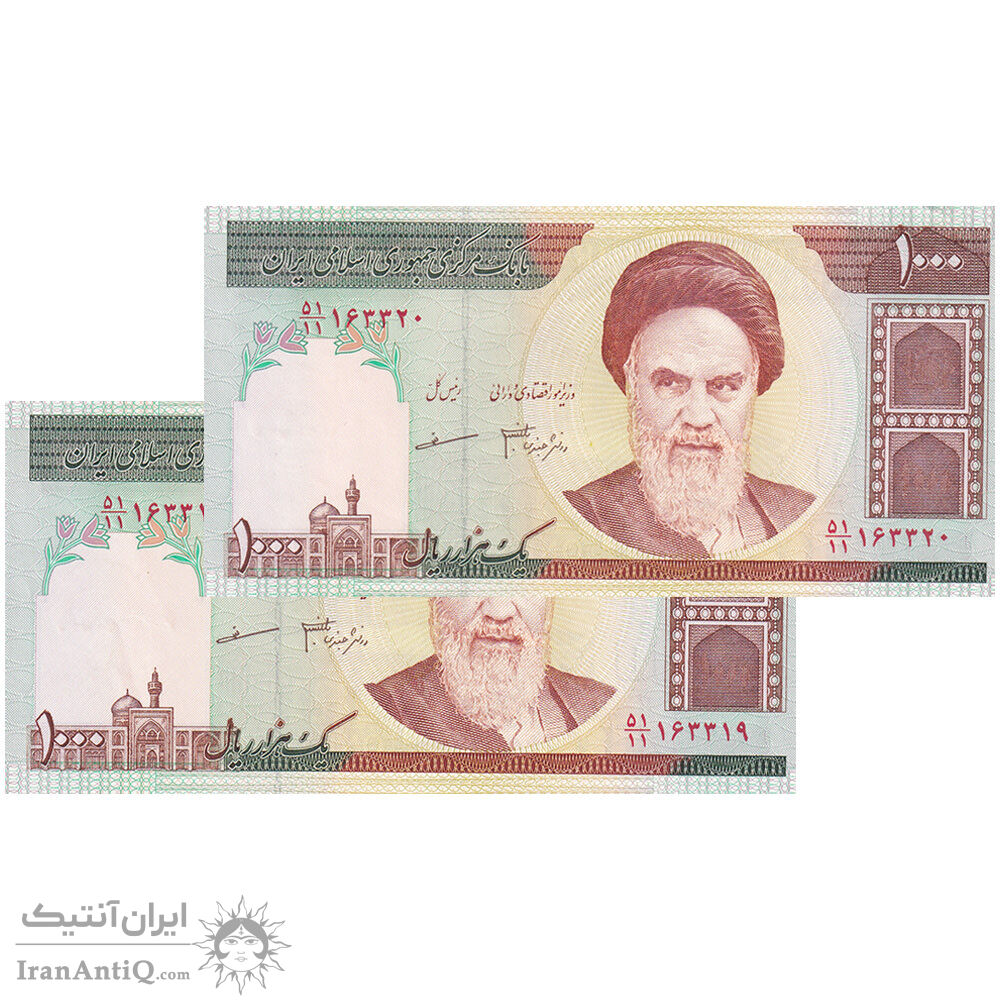 اسکناس 1000 ریال (جعفری - مظاهری) - جفت - UNC62 - جمهوری اسلامی