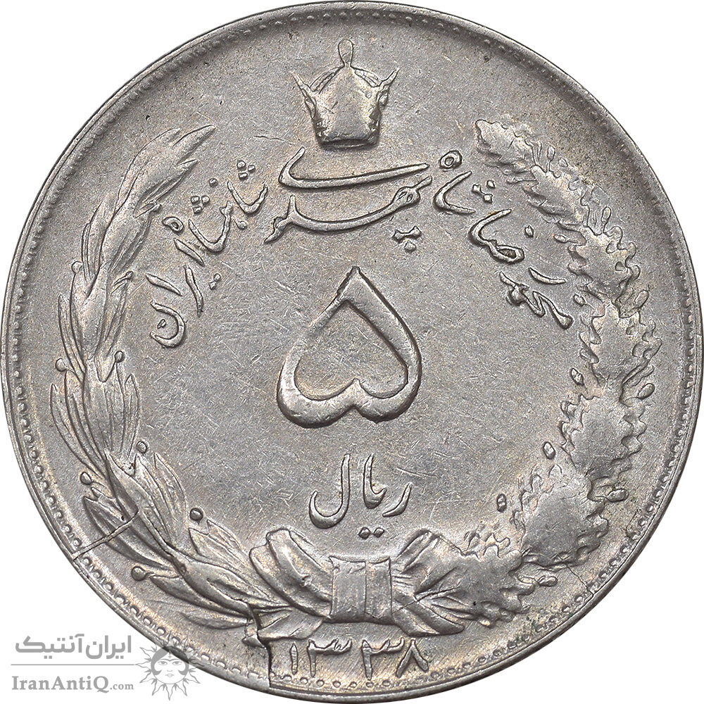 سکه 5 ریال 1338 نازک - EF45 - محمد رضا شاه
