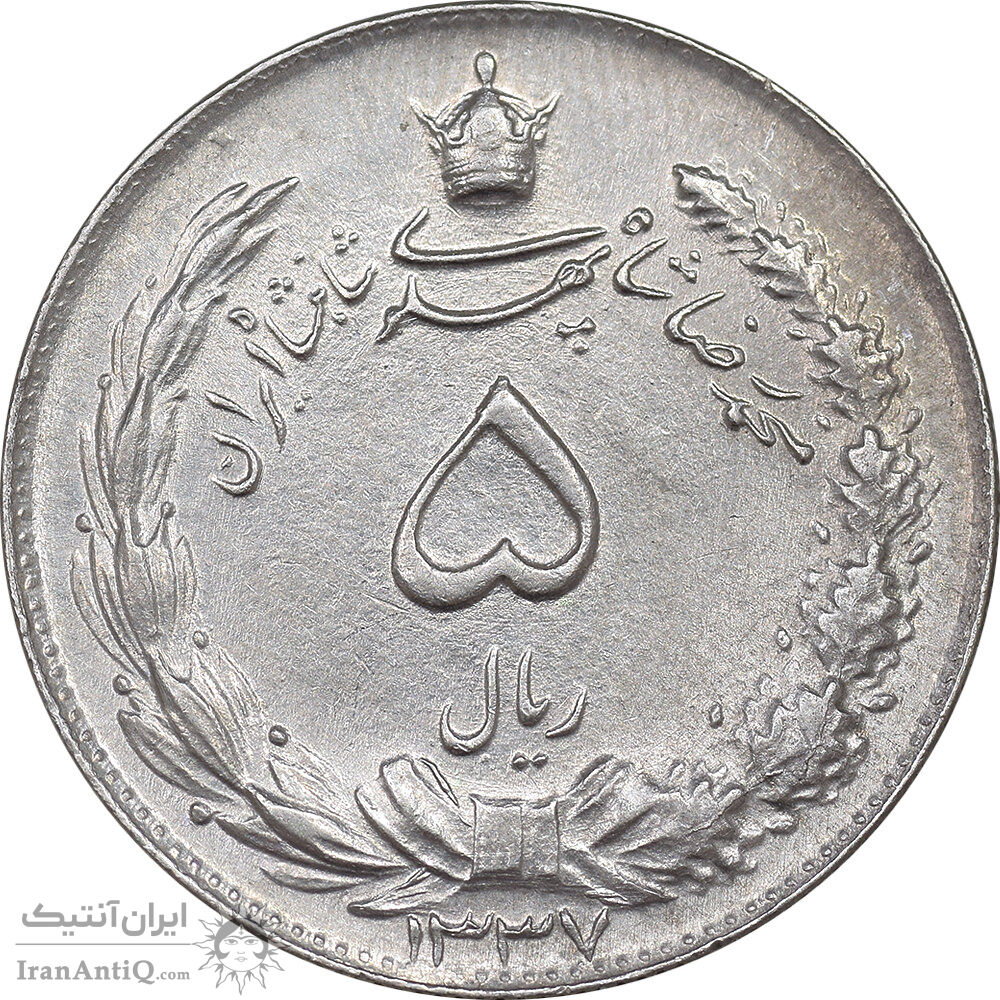 سکه 5 ریال 1337 - AU55 - محمد رضا شاه