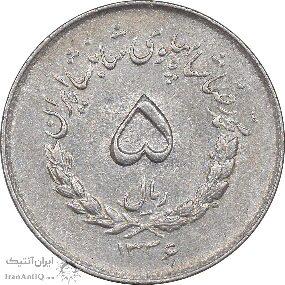 Iran 5 rials 1336 coin - AU58 - mohammad reza shah