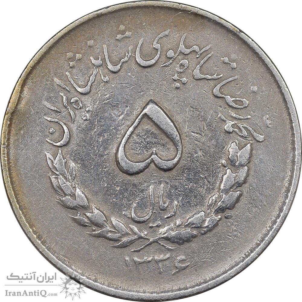 سکه 5 ریال 1336 مصدقی - VF35 - محمد رضا شاه