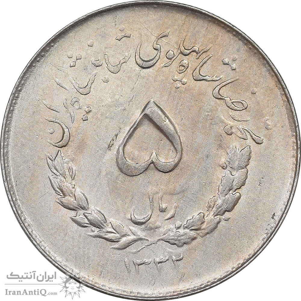 Iran 5 rials 1332 coin - AU58 - mohammad reza shah