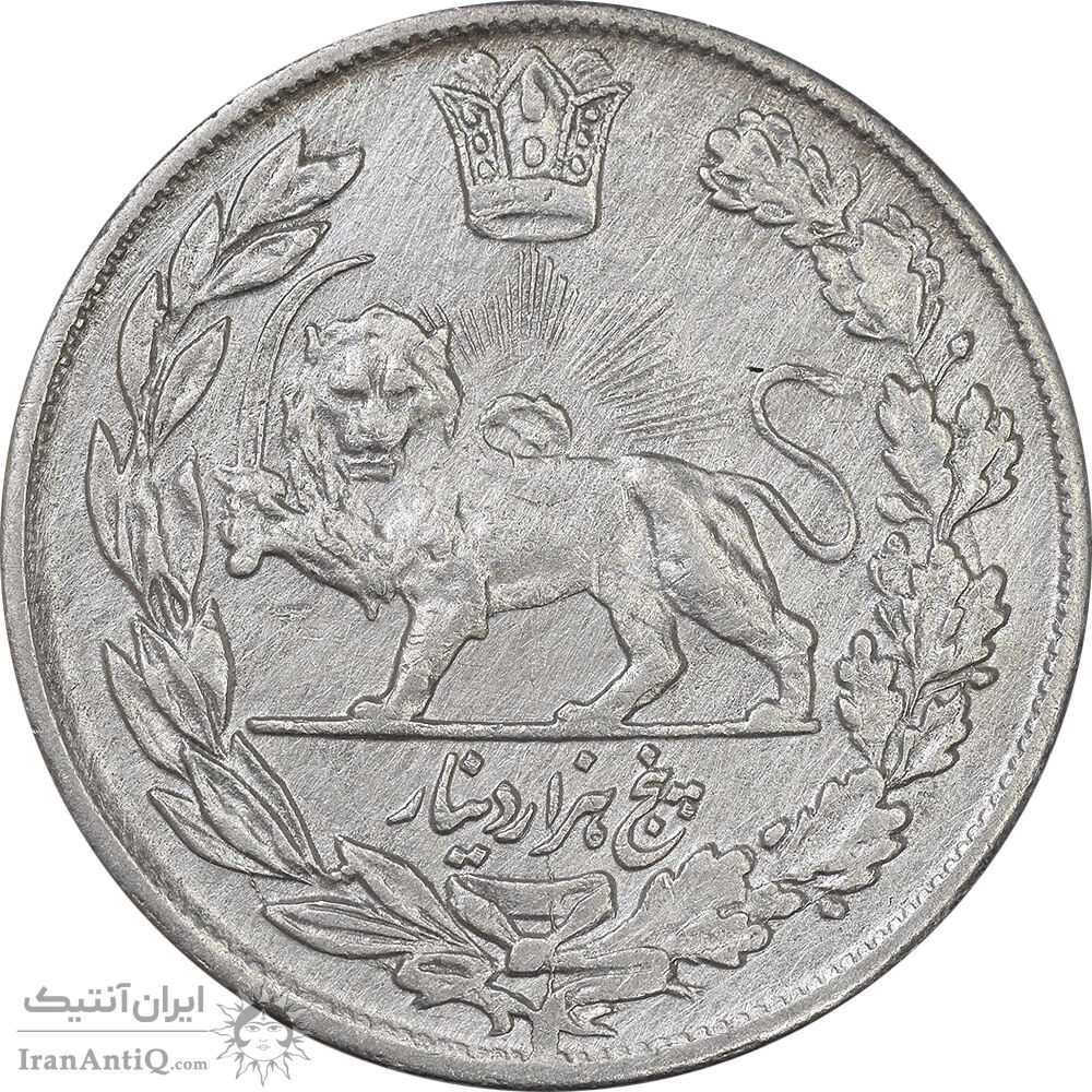 سکه 5000 دینار 1343 تصویری - با یقه - EF - احمد شاه