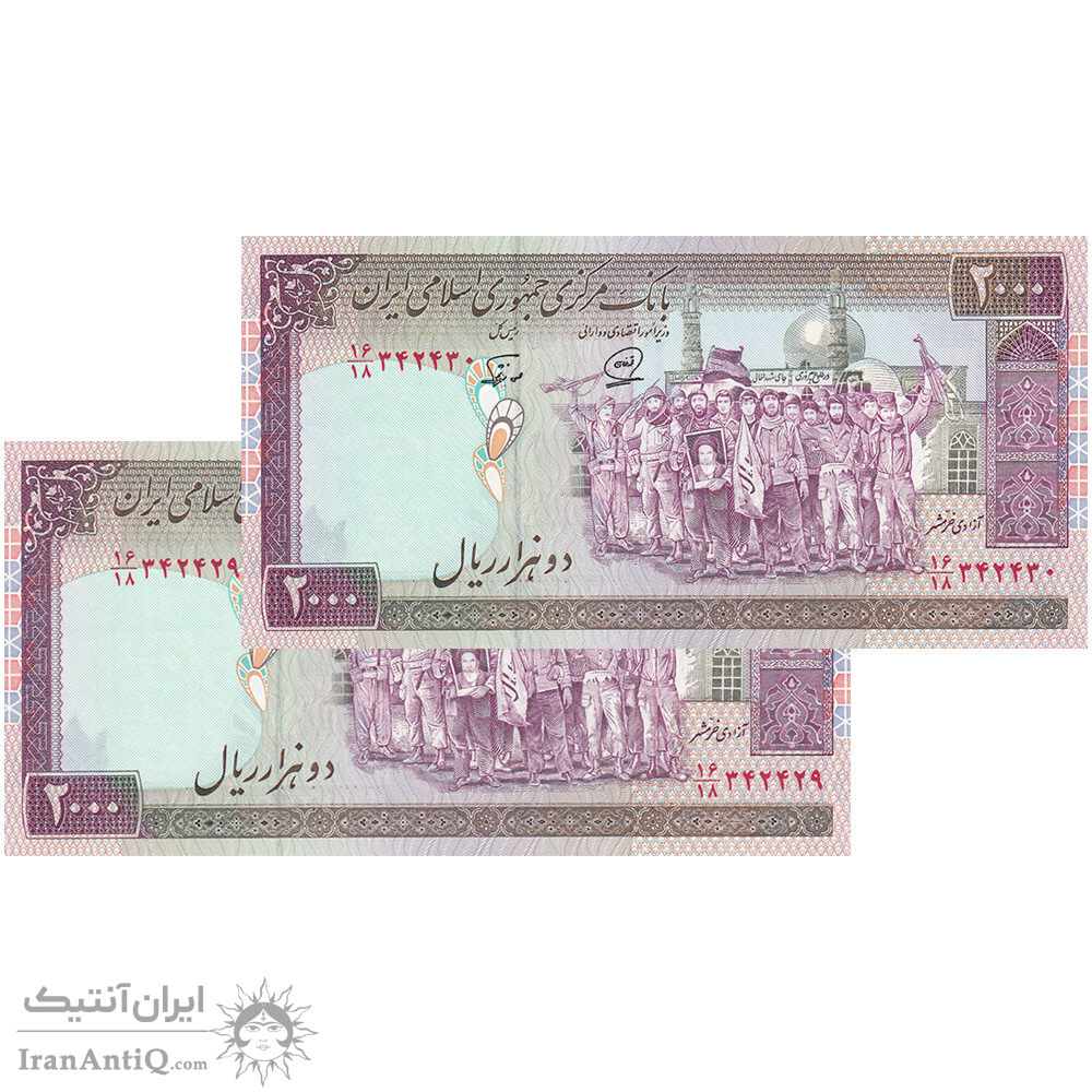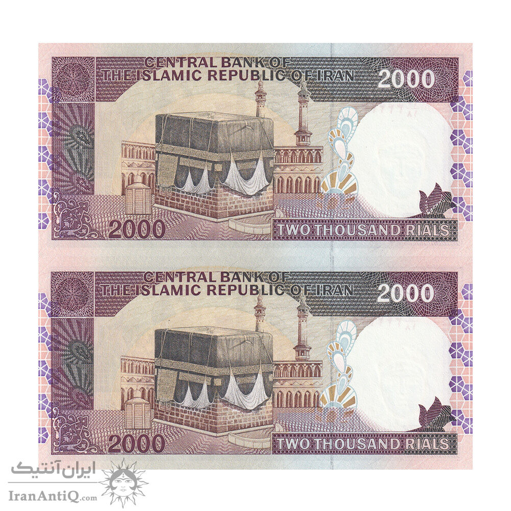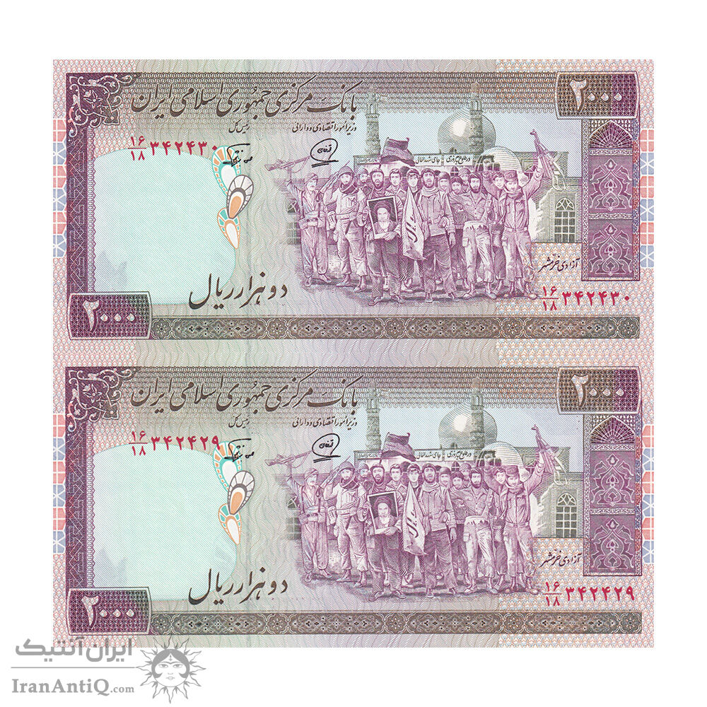 اسکناس 2000 ریال (محمدخان - نوربخش) شماره بزرگ - نخ کامپیوتری - جفت - UNC64 - جمهوری اسلامی