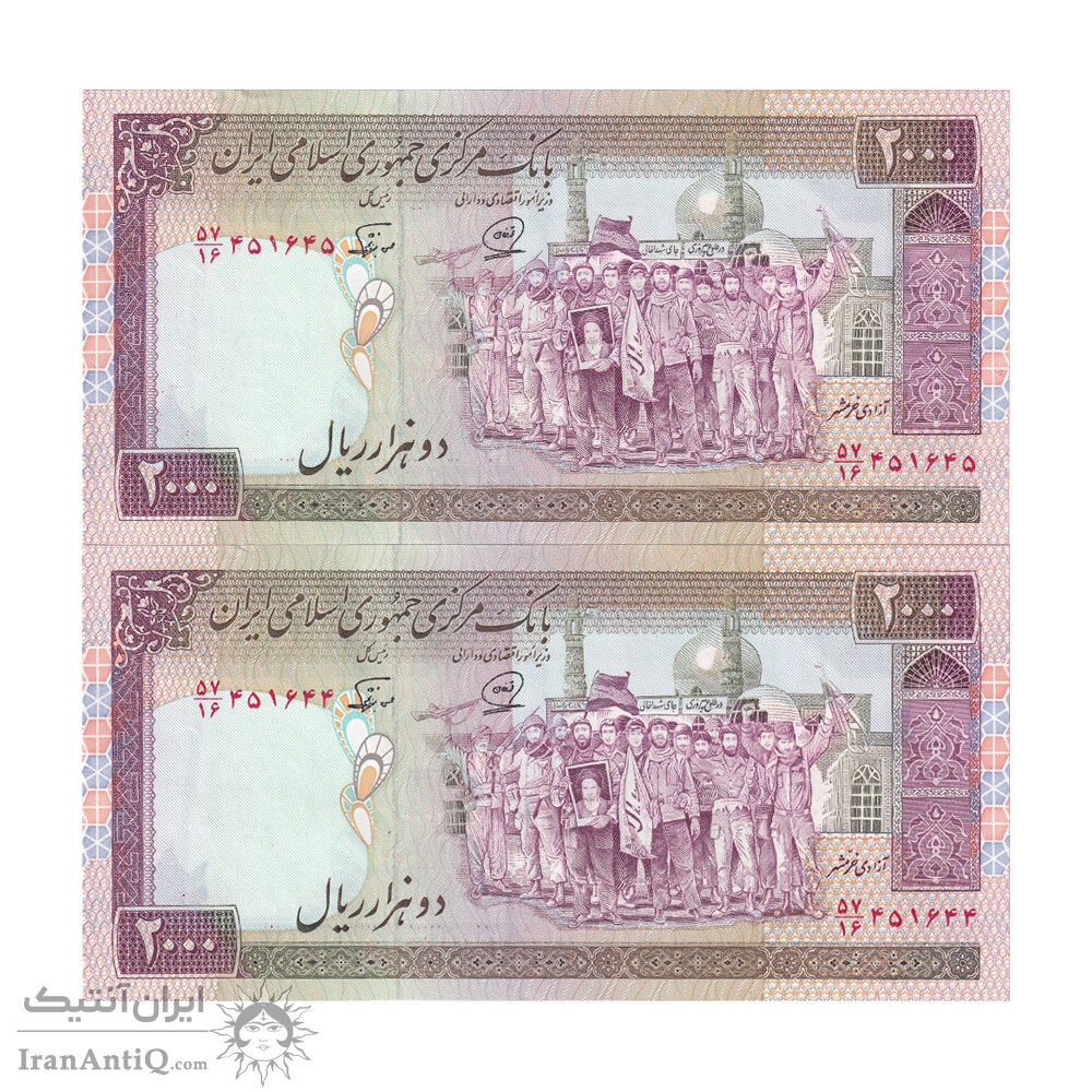 اسکناس 2000 ریال (محمدخان - نوربخش) شماره کوچک - جفت - AU55 - جمهوری اسلامی