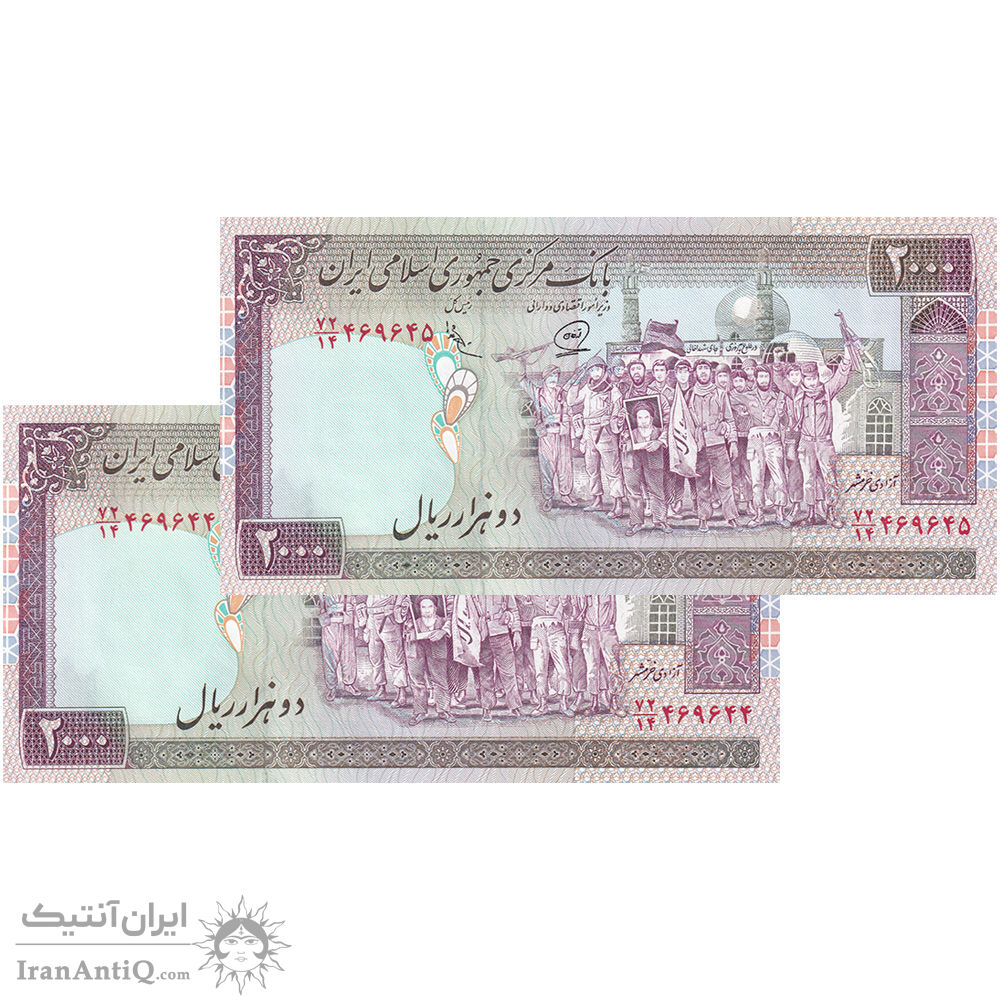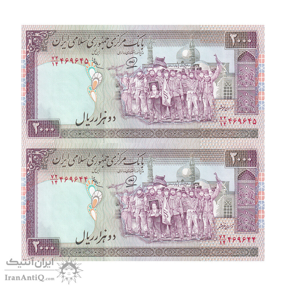اسکناس 2000 ریال (محمدخان - عادلی) - جفت - UNC63 - جمهوری اسلامی
