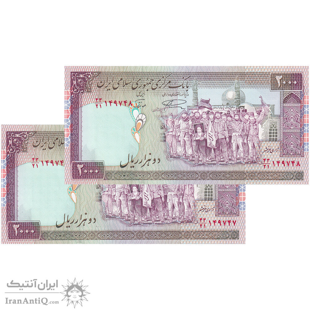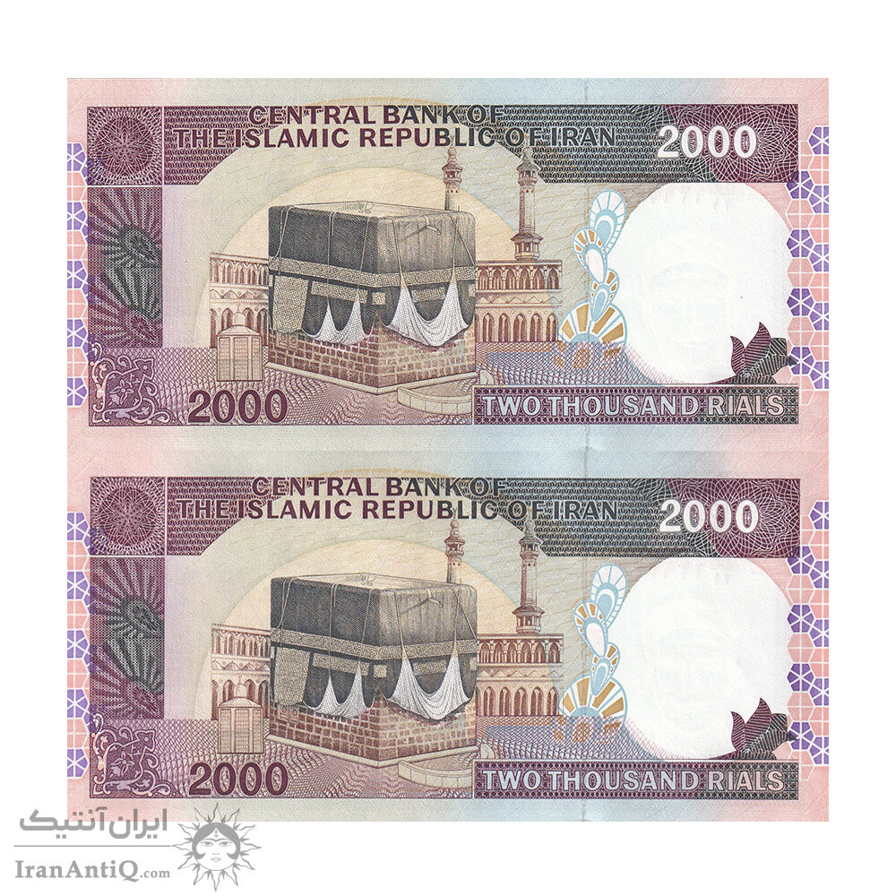 اسکناس 2000 ریال (نمازی - نوربخش) فیلیگران فهمیده - نخ نستعلیق - جفت - UNC64 - جمهوری اسلامی