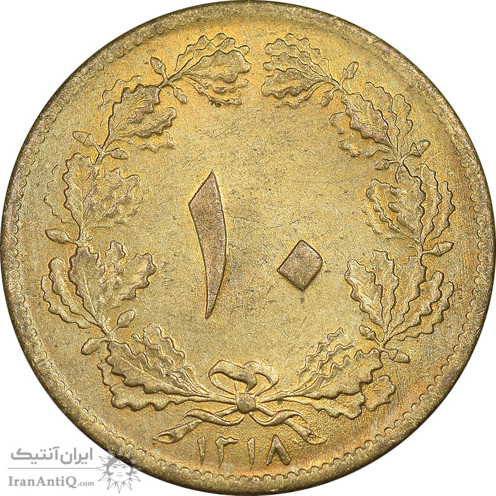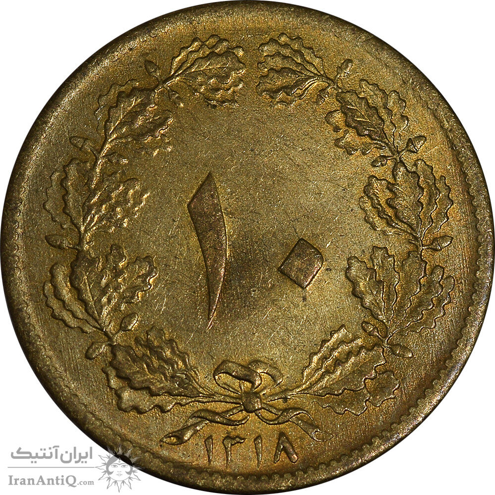 سکه 10 دینار 1318 برنز - MS63 - رضا شاه