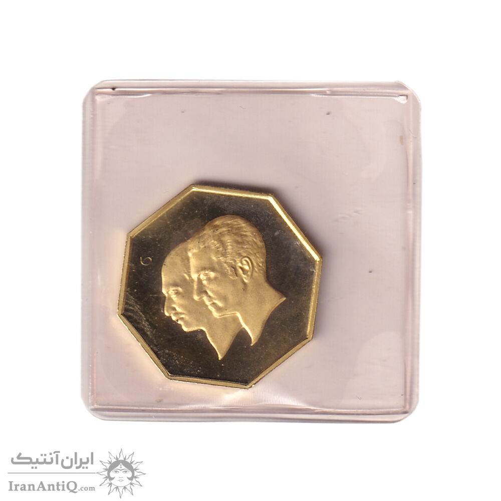 مدال طلا 10 گرمی بانک ملی - هشت ضلعی - با پلمپ فابریک - PF67 - محمد رضا شاه