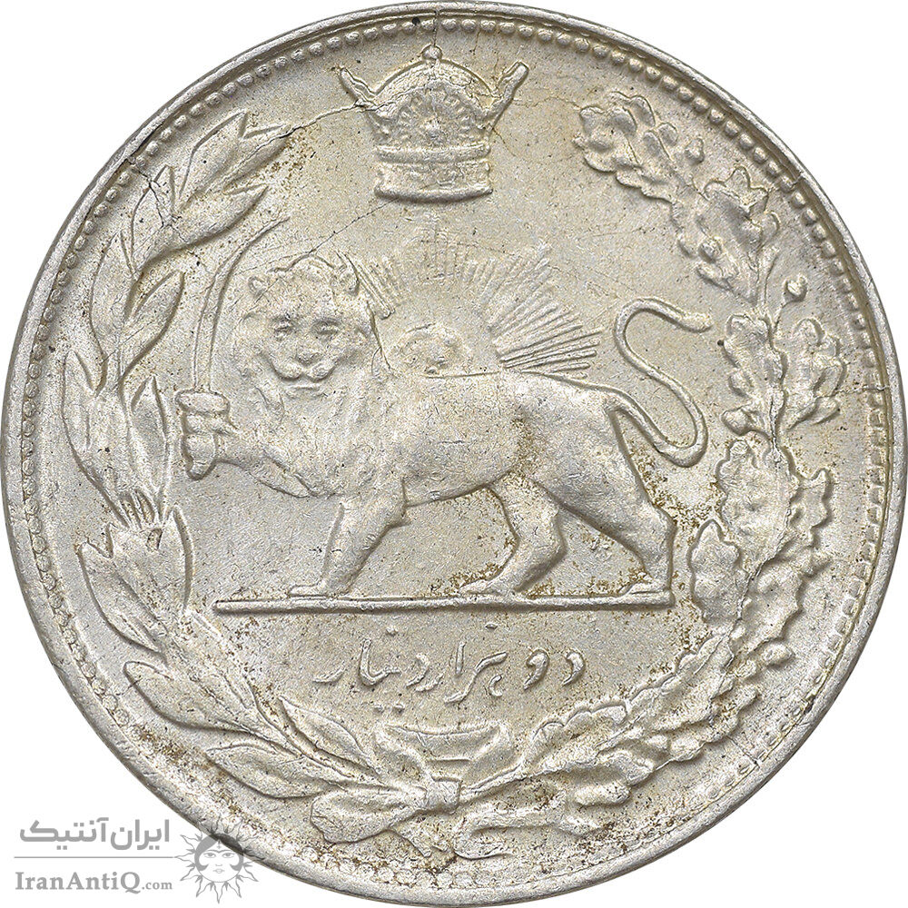 Iran 2000 dinars 1308 coin - MS63 - reza shah pahlavi