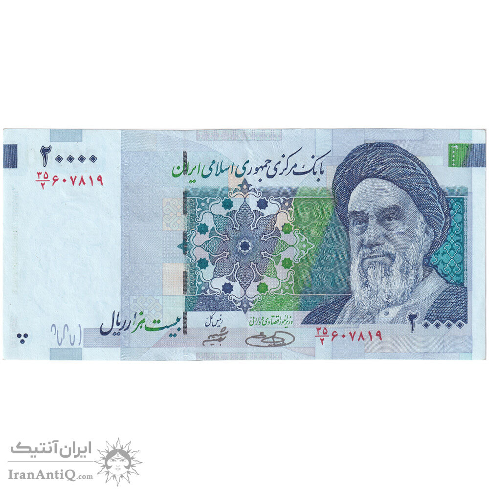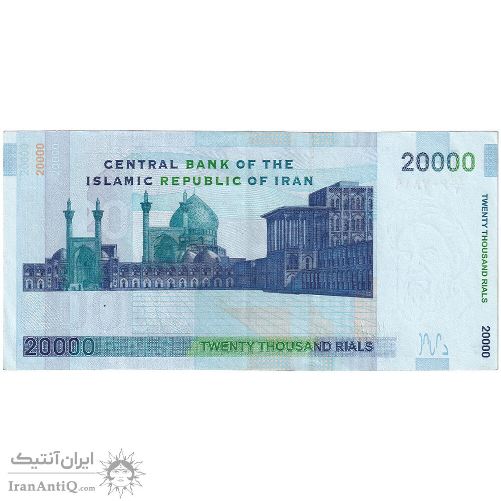 اسکناس 20000 ریال (حسینی - شیبانی) تصویر بزرگ - امضا بزرگ - تک - AU53 - جمهوری اسلامی