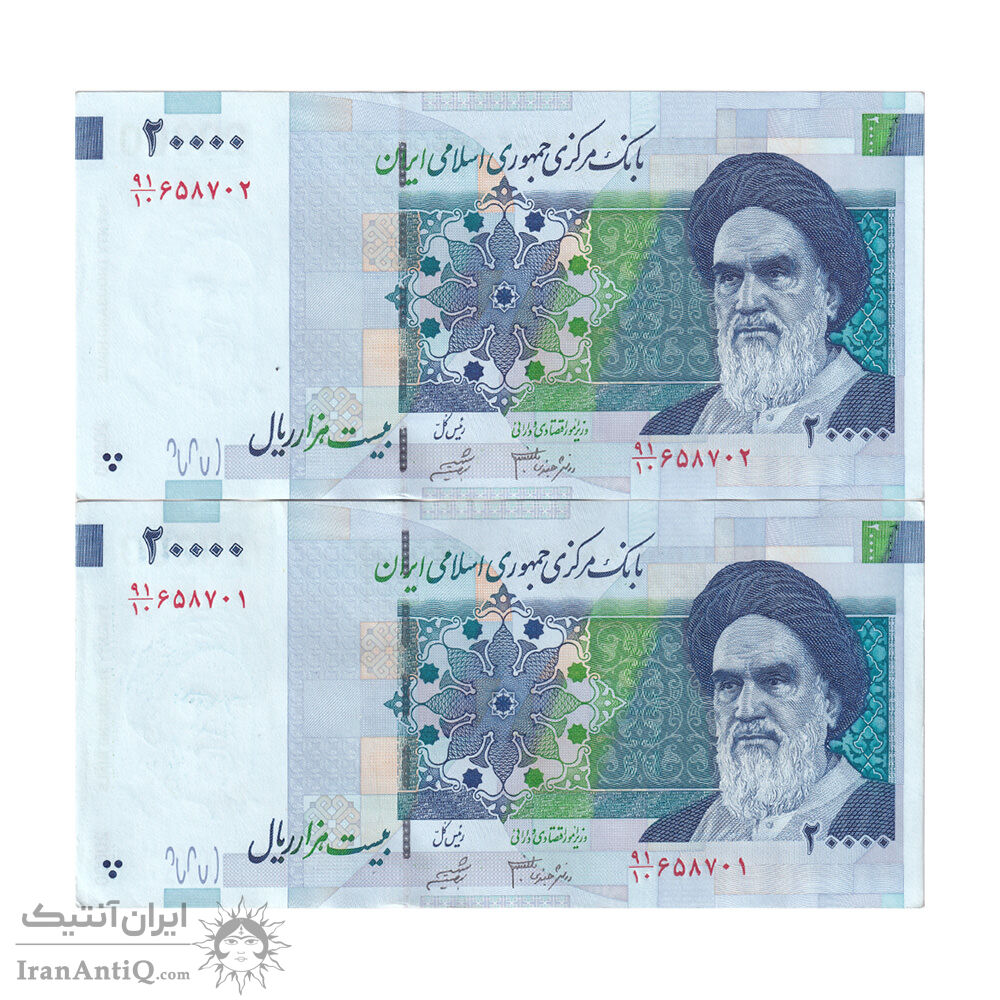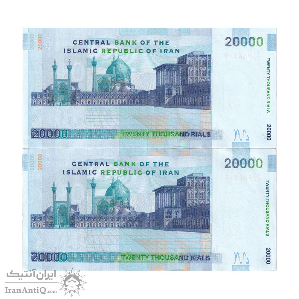 اسکناس 20000 ریال (جعفری - شیبانی) فیلیگران 8 - جفت - AU58 - جمهوری اسلامی