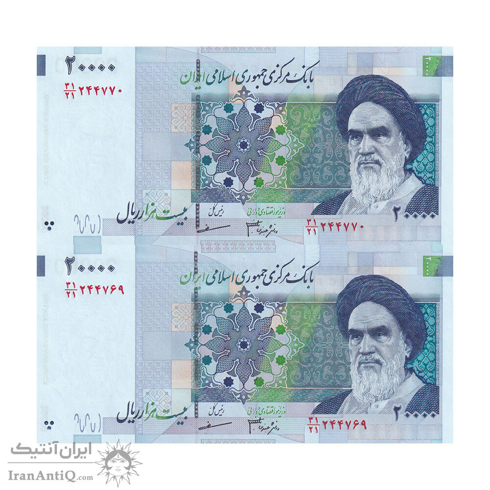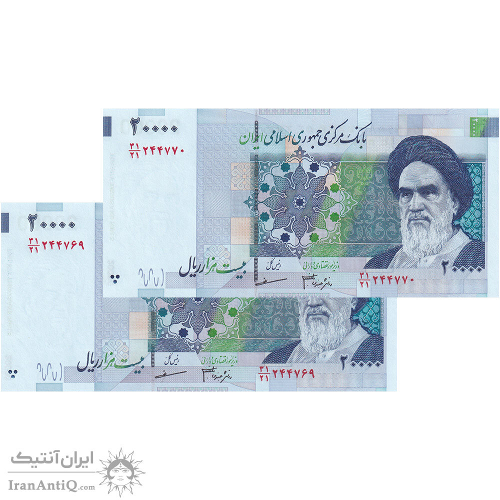 اسکناس 20000 ریال (جعفری - مظاهری) - جفت - UNC64 - جمهوری اسلامی