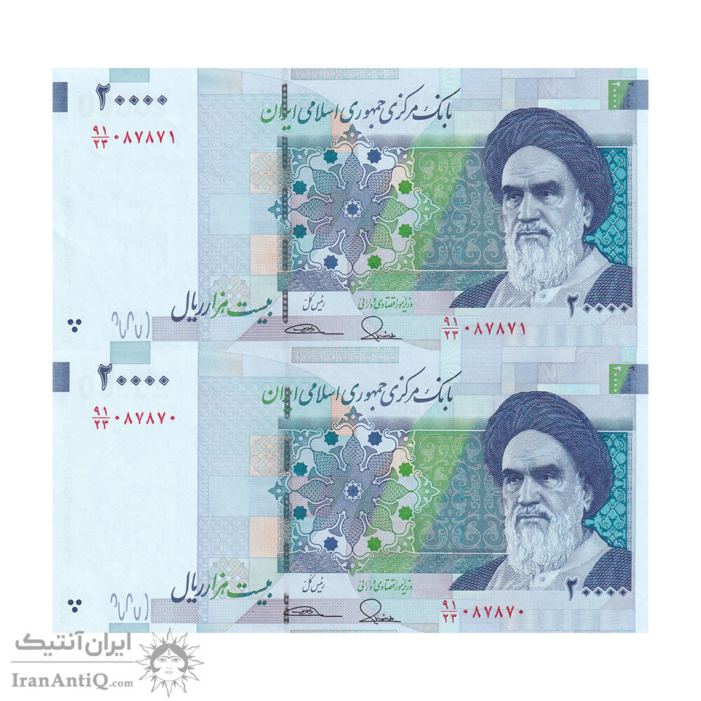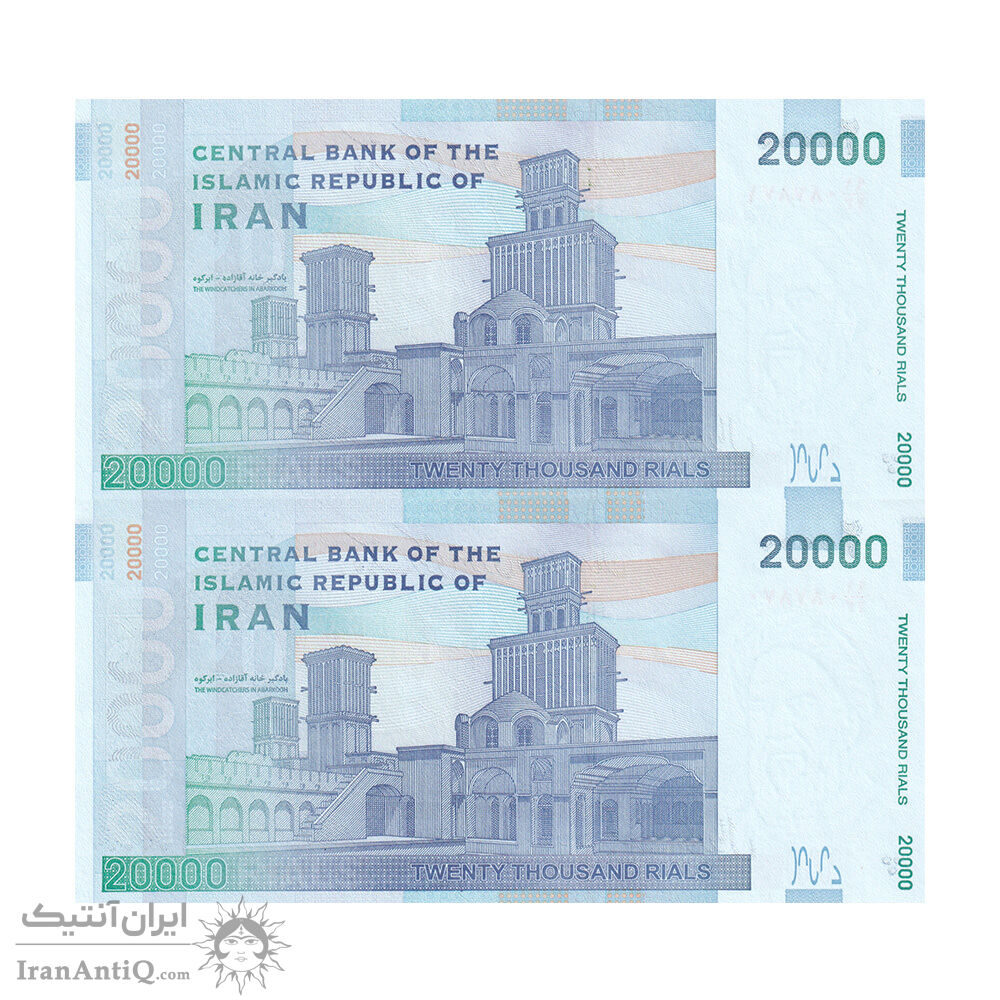 اسکناس 20000 ریال (طیب نیا - سیف) بادگیر - فیلیگران 8 - جفت - UNC63 - جمهوری اسلامی